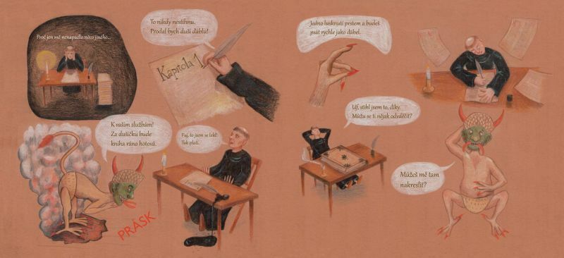 Kniha vznikla díky spolupráci Benediktinského opatství sv. Václava a Agentury pro rozvoj Broumovska s Fakultou designu a umění Ladislava Sutnara. Ilustrace vytvořily čtyři studentky magisterského studia z ateliéru Komiks a ilustrace pro děti. Anna Bergmannová, Kamila Pokorná, Anne-Marie Rohanová a Jana Vobořilová pracovaly pod vedením doc. M.A. Barbary Šalamounové. Různorodost výtvarných projevů sjednocuje zvolená technika - kresba tužkou a pastelkami v kombinaci s akvarelem.