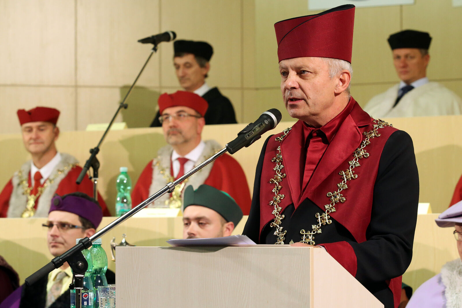 Odpolední slavnostní ceremoniál, který se každoročně koná u příležitosti Dne boje studentů za svobodu a demokracii, zahájil svým projevem rektor ZČU Miroslav Holeček. Hovořil při něm o proměňující se roli univerzit v době prudkého vývoje komunikačních technologií, upozornil na nebezpečné posouvání významu slova elity ve smyslu devalvace hodnoty vysokoškolského vzdělání a mimo jiné také poukázal na nutnost, aby univerzity byly otevřenými institucemi, propojenými s okolním světem. „Bylo by především neštěstím se uzavírat do sebe, hýčkat si náš malý ostrůvek akademických svobod a postupně přestat vnímat dění okolo nás. Otevřenost univerzity znamená, že děláme vše pro to, abychom hráli významnou roli v celospolečenském dialogu i to abychom byli stále váženými partnery, kteří dokážou okolní svět přesvědčit o své odbornosti,“ uvedl Miroslav Holeček.