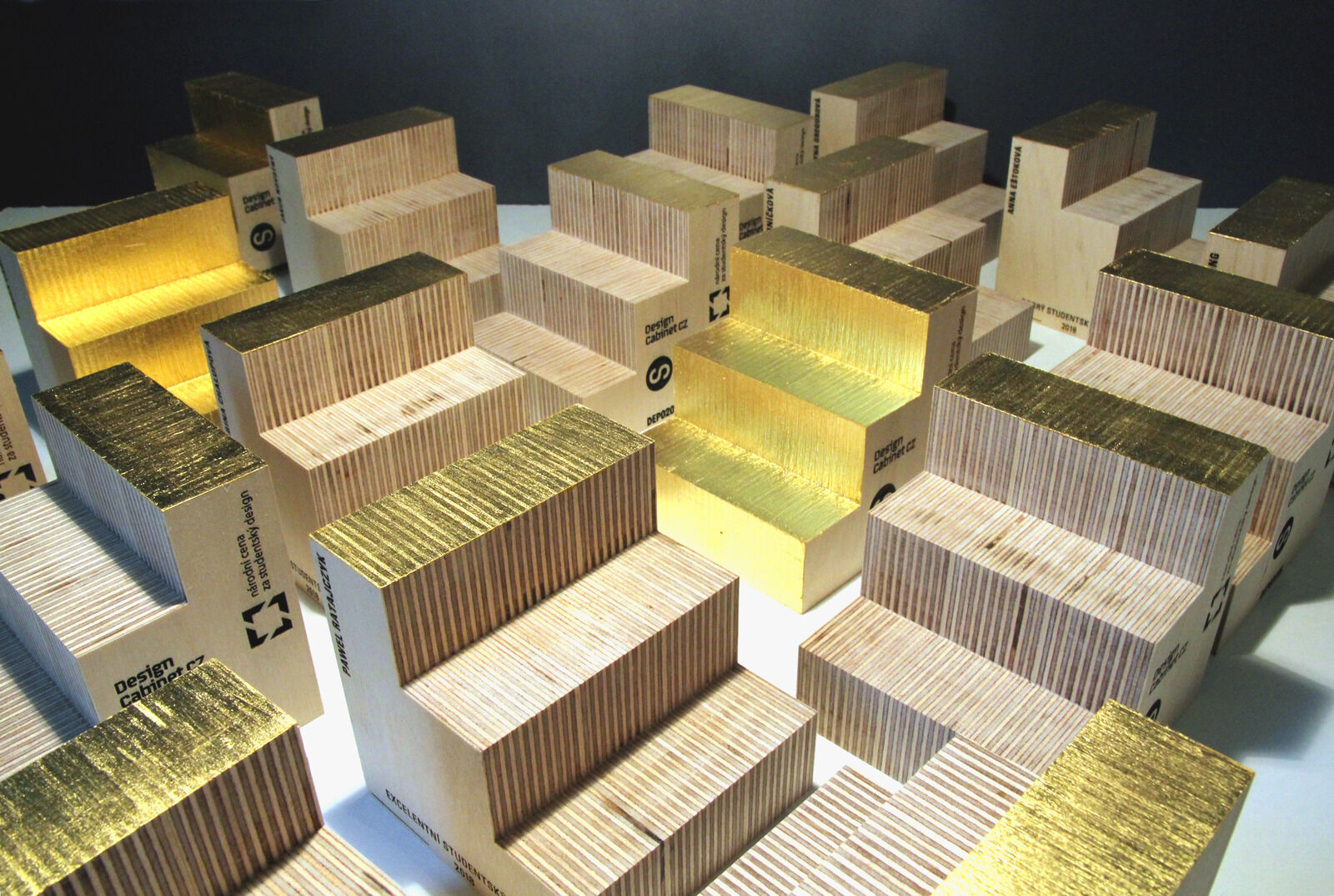 Letošní prestižní ocenění vítězných prací má podobu objektu (materiál dřevo, Multiplex a plátkové zlato), který znázorňuje tři schody, symbol cesty, hledání a postupného nalézání cíle, až k samotnému vrcholu. Tvarově vychází z hmotné formy krychle, základního stavebního kamene, který symbolizuje společnou stavbu všech možných děl. Poslední schod, coby symbol úspěšně dosaženého cíle, je pozlacen plátkovým zlatem. Autorem designu je renomovaný designér a pedagog Fakulty designu a umění Ladislava Sutnara doc. M.A. Petr Vogel.