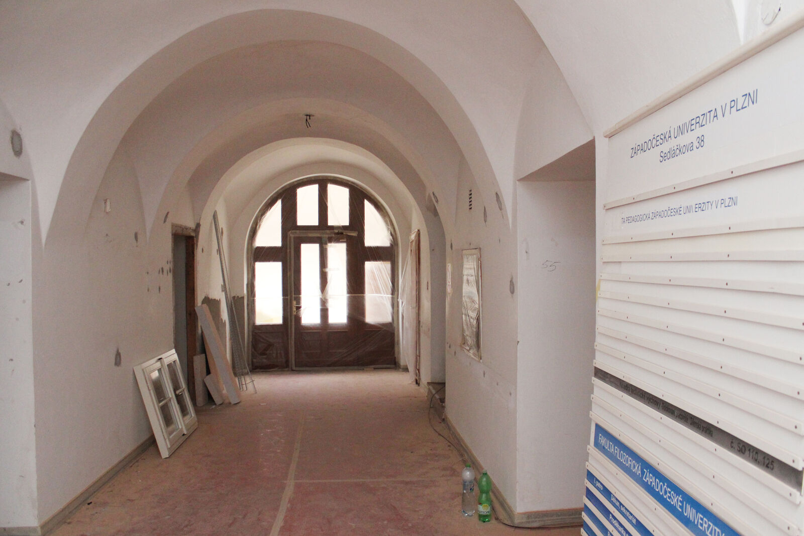 Namísto studentů a pedagogů patří sídlo Fakulty filozofické Západočeské univerzity na rohu Veleslavínovy a Sedláčkovy ulice stavbařům. Rekonstrukce památkově chráněné budovy je v závěrečné třetí fázi a až skončí, bude zrekonstruovaná kompletně.