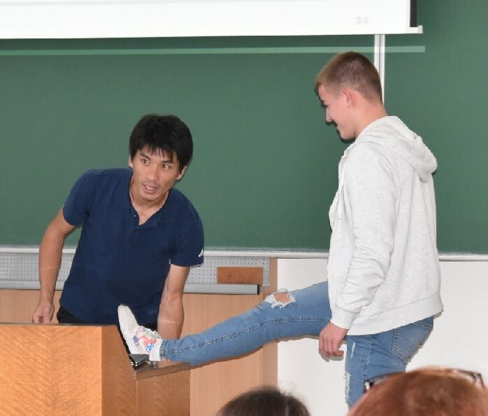 Teruya Watanabe ve své přednášce (Teaching of athletics