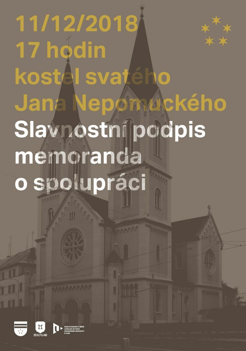 Fakulta designu a umění Ladislava Sutnara Západočeské univerzity v Plzni a Diecéze plzeňská vás srdečně zvou v úterý 11. prosince 2018 v 17 hodin do kostela svatého Jana Nepomuckého na slavnostní podpis memoranda o spolupráci.