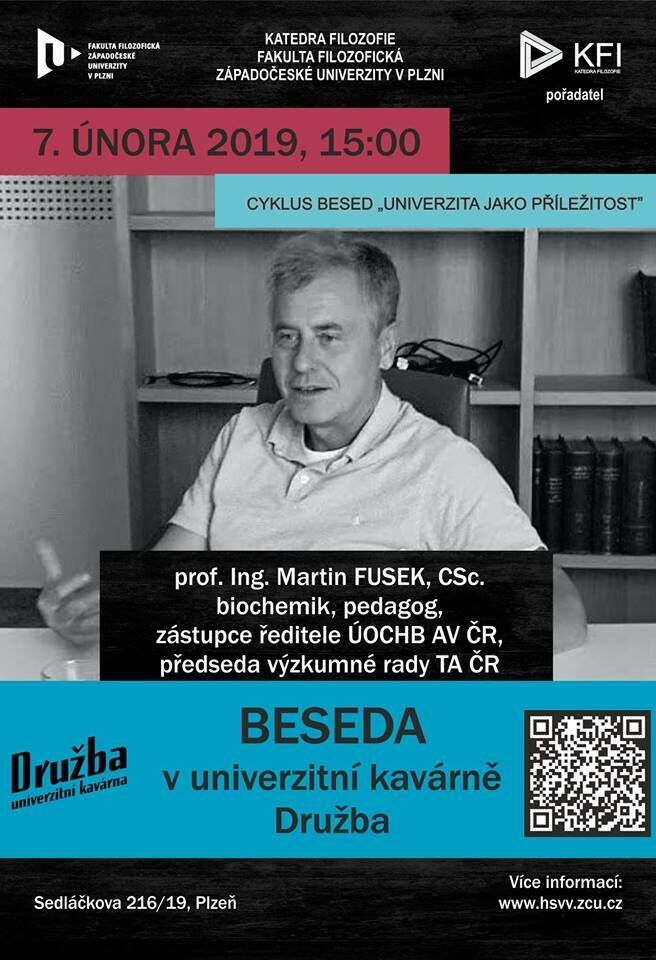 Beseda s Martinem Fuskem se uskuteční ve čtvrtek 7. února od 15 hodin v univerzitní kavárně Družba v Sedláčkově ulici 19.