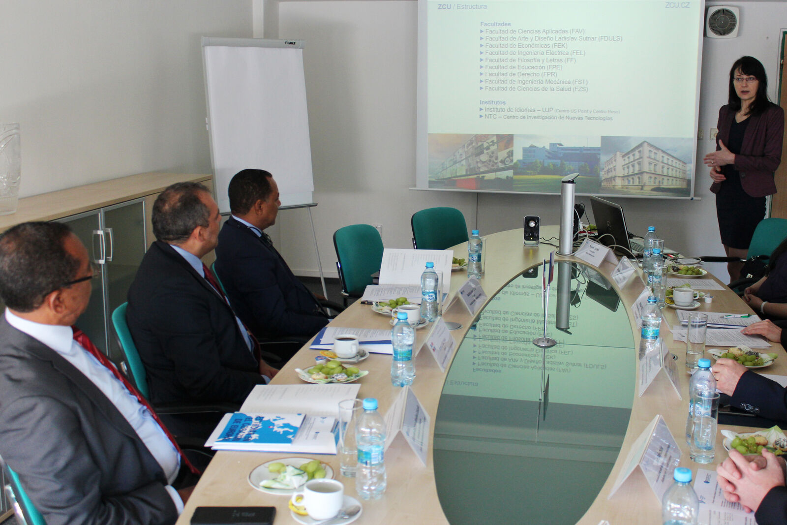 Zahraniční hosty, jimiž byli generální konzul Dominikánské republiky v Praze Ramón Feliz Peña a představitelé Autonomní univerzity Santo Domingo – prorektor pro rozvoj Elizardo Antonio Medina Calcaño a děkan Fakulty právnických a politických věd Bautista López García, přivítal na Západočeské univerzitě prorektor pro rozvoj a vnější vztahy Vladimír Duchek.