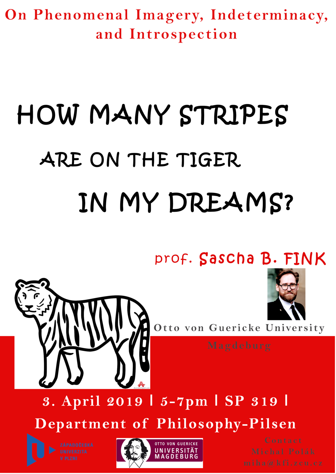 Profesor Sascha B. Fink z magdeburské univerzity Otto-von-Guericke-Universität vystoupí s přednáškou "How many stripes are on the tiger in my dreams?" ve středu 3. dubna 2019.