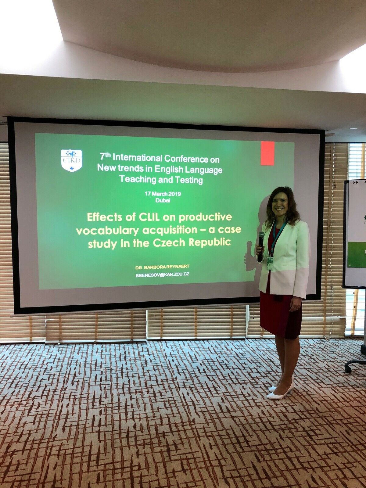 Významnou konferenci v Dubaji zaštiťoval kanadský institut Canadian Institute for Knowledge Development. S prezentací vystoupila i Barbora Reynaert z katedry anglického jazyka Fakulty pedagogické ZČU v Plzni. Její téma se týkalo výzkumu v oblasti CLIL (Content and Language Integrated Learning) výuky propojující cizí jazyk a odborný předmět.