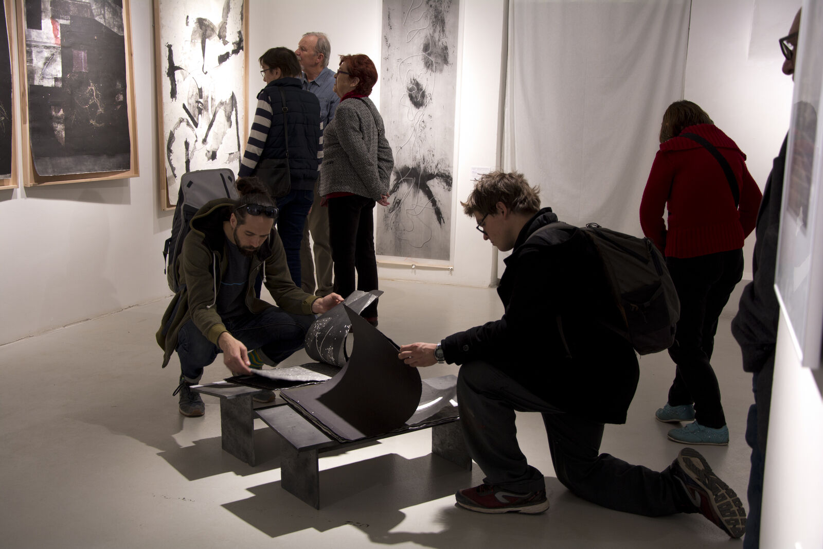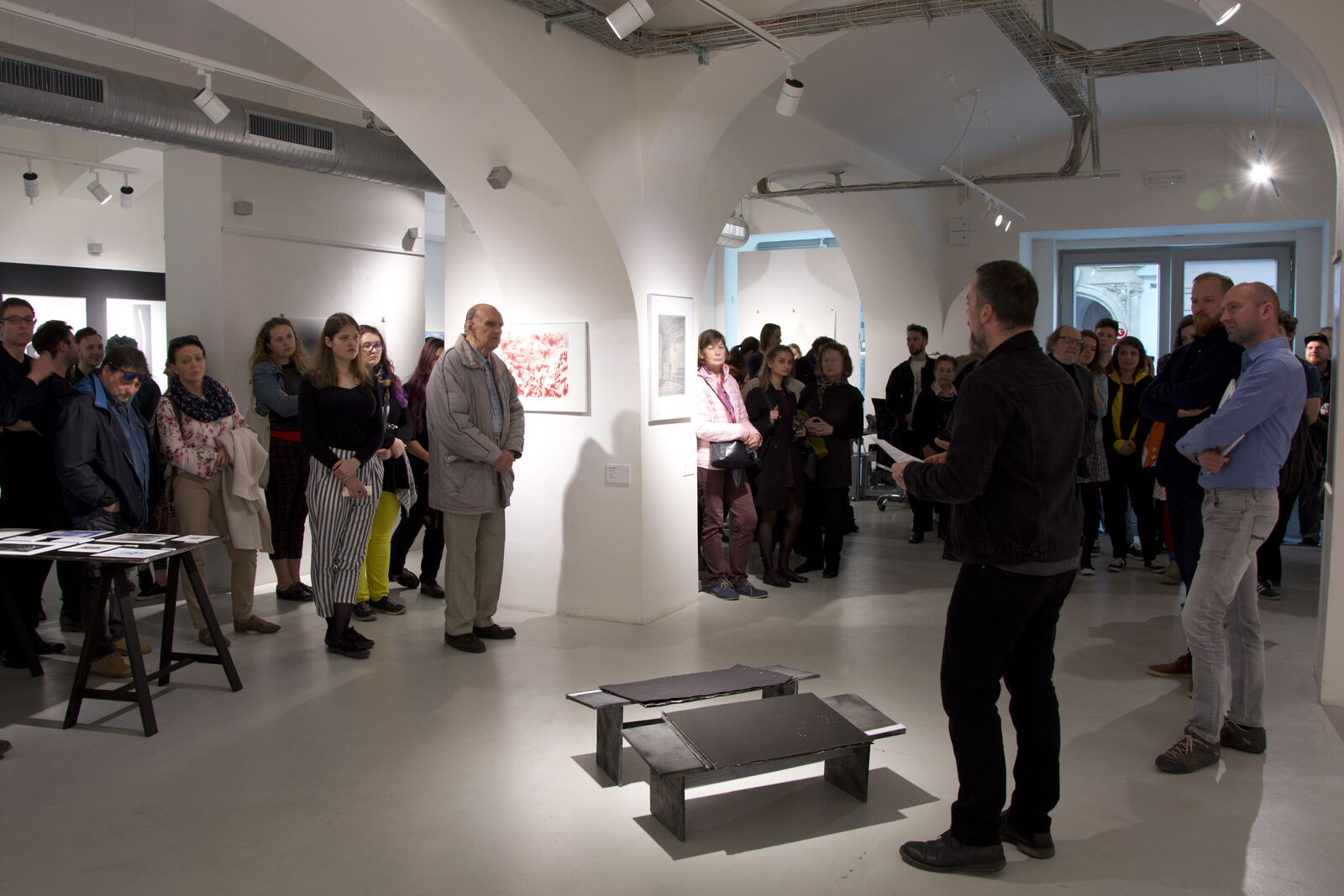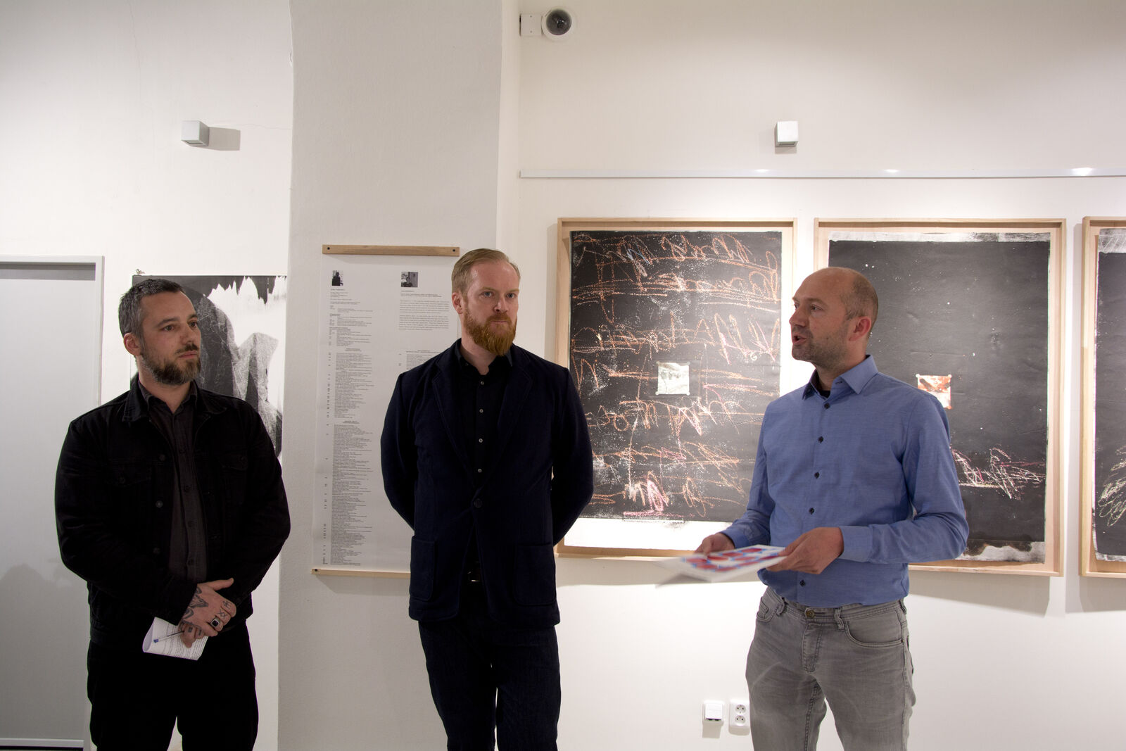 Zleva: Jan Van Woensel (kurátor výstavy), Michal Najman (ředitel Nadace Hollar), Vojtěch Aubrecht (proděkan Sutnarky)