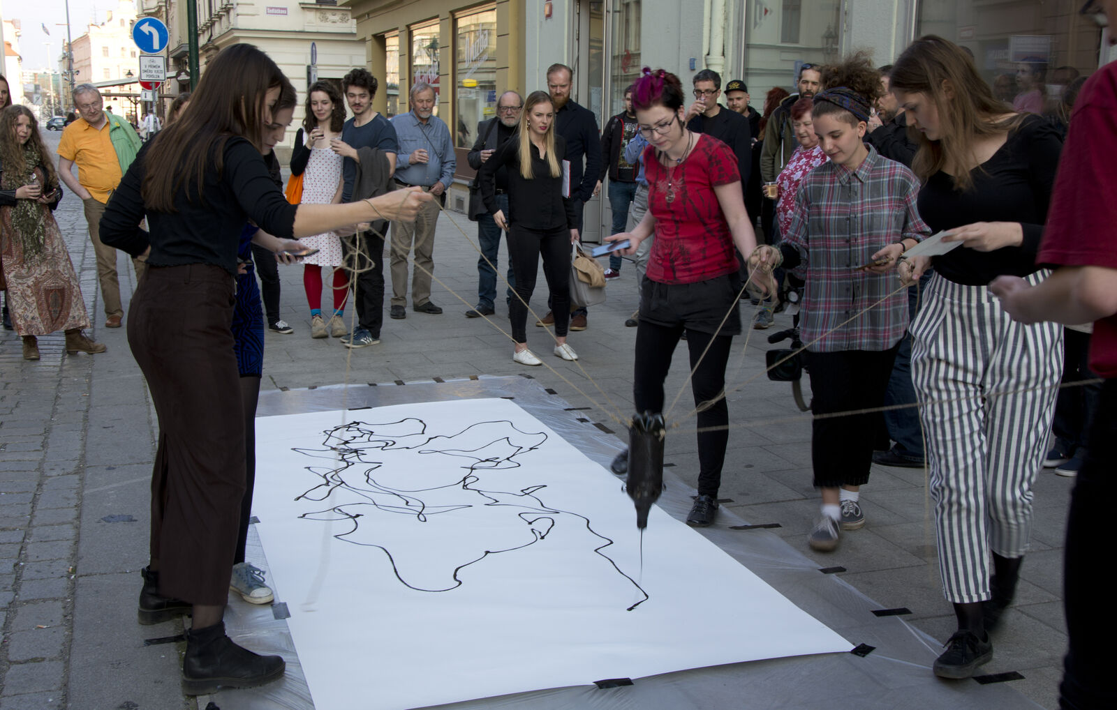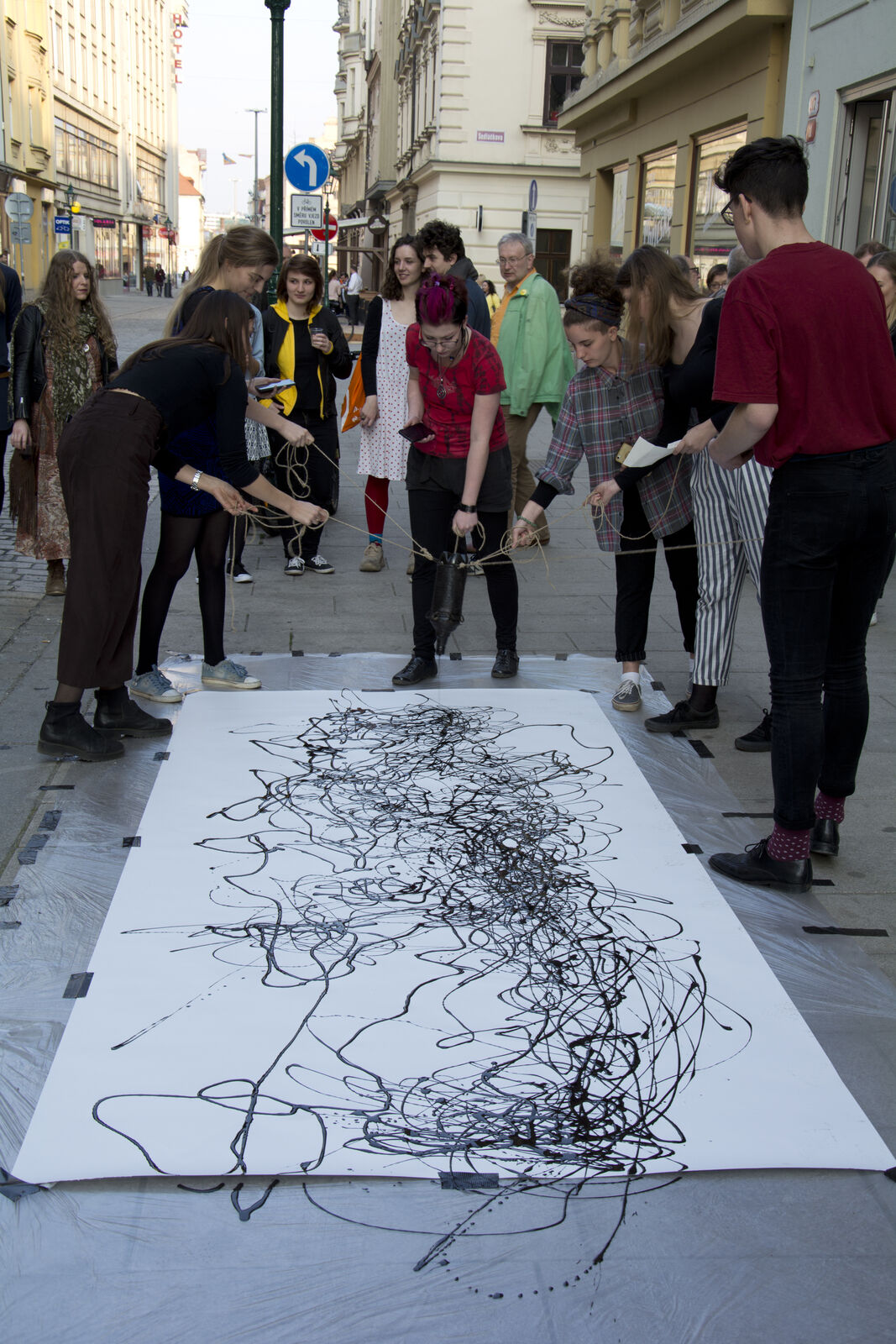 Společná kolaborativní kresba studentů: Denisa Váňová, Lucie Dehnerová, Tereza Laznová, Yuliya Lupsiakova, Veronika Štorková a Mikuláš Kalný