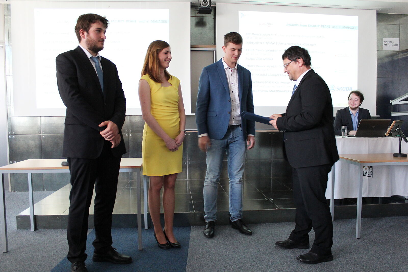 „Studenti se jednak učí spolupracovat a také jsou od samého začátku vedeni k systematičnosti, což je skvělé. Poznal jsem lidi, kteří se snaží na univerzitě dělat věci důležité pro praxi,“ uvedl Jiří Vokoun, produktový manažer Škody Transportation, která se projektu zúčastnila poprvé. Studentům zadala téma systém podjezdových zábran tramvaje. Nejlépe ho vyřešil tým ve složení Lucie Šimečková (Fakulta strojní/FST) – manažerka, Rostislav Prokop (Fakulta designu a umění Ladislava Sutnara/FDULS) – zástupce manažerky, Petr Kanta (FST), Pavel Skála (FST), Tereza Doležalová (Fakulta zdravotnických studií/FZS), Tereza Vašíčková (FZS). Svou práci studenti představili svým českým, ale i německým kolegům z Technické vysoké školy Deggendorf a z Technologického kampusu v Chamu.