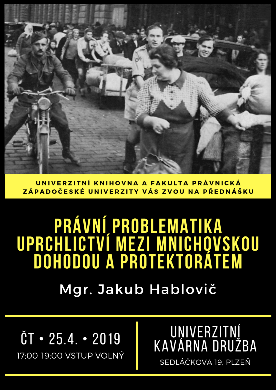 Přednášet bude Mgr. Jakub Hablovič z Právnické fakulty Západočeské univerzity v Plzni.