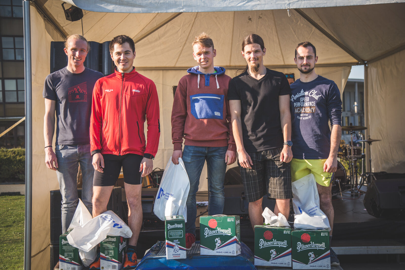 Nejrychlejší tři dvojice si odnesly dárky od Západočeské univerzity a Plzeňského Prazdroje. Na prvním místě se umístili Jan Majer a Roman Vodička z Fakulty pedagogické, kteří štafetu uběhli v čase 23 minut a 28 sekund a mohou se tak pyšnit hattrickem z Běhu s rektorem.