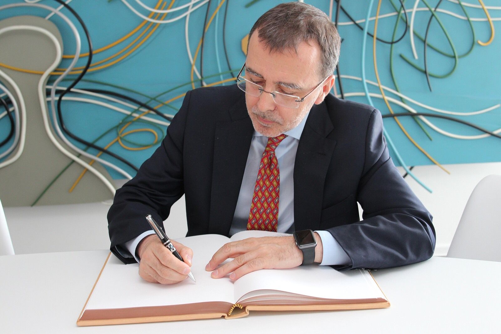 Západočeskou univerzitu v Plzni navštívil ve čtvrtek 25. dubna velvyslanec Španělského království v České republice J. E. Ángel Lossada Torres-Quevedo. On a pověřenkyně pro oblast vzdělávání Amaya Cal se v budově rektorátu ZČU setkali s prorektorem pro rozvoj a vnější vztahy Vladimírem Duchkem a Margaritou Gianino Sánchez, která na Ústavu jazykové přípravy ZČU vyučuje španělštinu.
