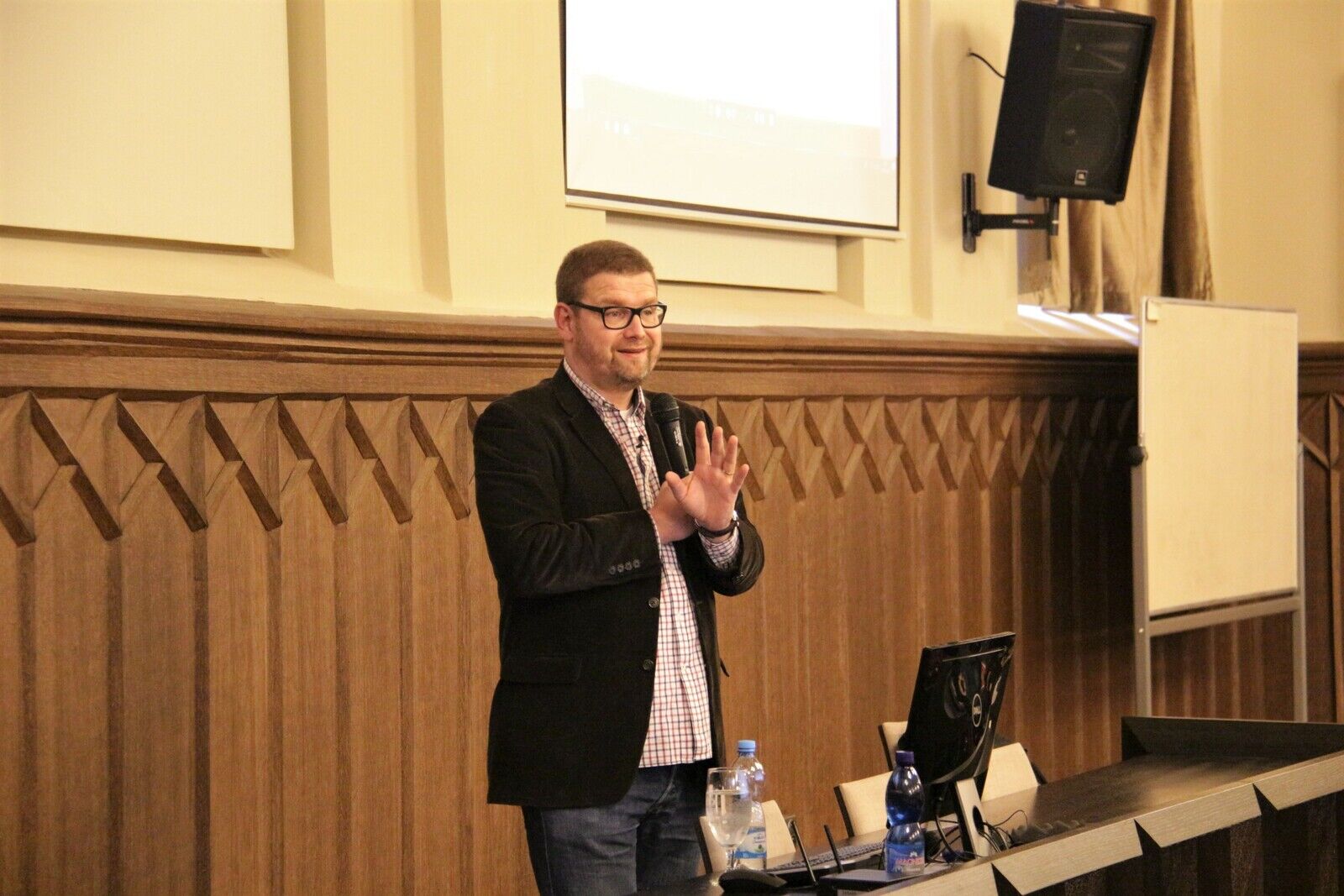 Beseda v úterý 7. května přilákala studenty i širokou veřejnost, kterou zajímala realita novinářského světa v detailech, jež není možné spatřit ve veřejných médiích. Jindřich Šídlo nejprve s částečnou nostalgií představil fungování médií v pototalitní době, kdy tuzemské mediální domy vlastnily převážně německé společnosti. Poté předestřel důvody, proč tento koncept vymizel, a popsal problémy, které plynou z vlastnictví domácími subjekty. Vynechána nebyla ani dřívější funkce a moc žurnalistů v porovnání s těmi dnešními.
