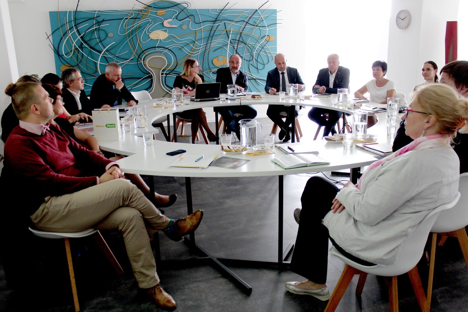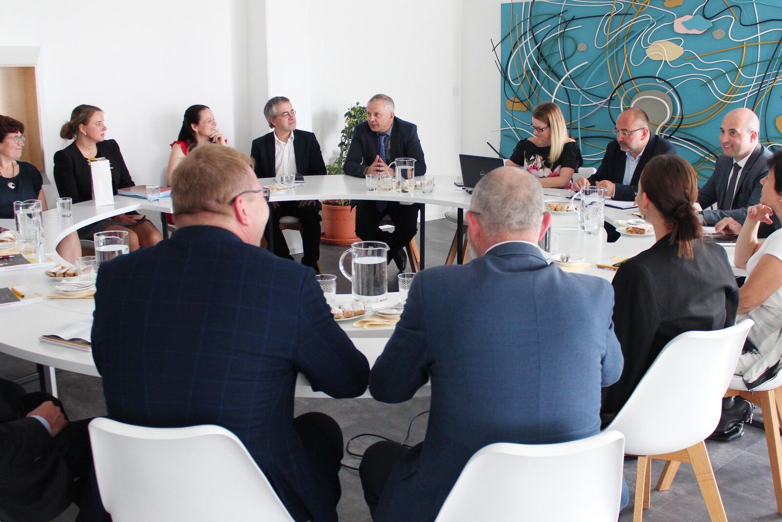 Rektor Západočeské univerzity v Plzni Miroslav Holeček společně s ostatními členy vedení přivítal v pondělí 27. května v budově rektorátu v kampusu na Borských polích primátora města Plzně Martina Baxu a další členy městské rady.