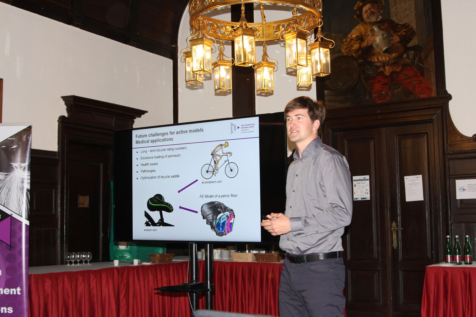 V prostorách Plzeňského Prazdroje se 24. června konal workshop projektu česko-bavorské spolupráce Virtuální model člověka pro prevenci, léčbu a rehabilitaci onemocnění ramene – současný stav a budoucí výzvy. Řešitelský tým výzkumného centra NTC při něm spolu s odborníky z partnerské univerzity OTH Regensburg prezentoval výsledky projektu, který se zaměřuje na využití nástrojů počítačového modelování v klinické praxi. „Svalově kosterní model ramene je složitý především v tom, jak realisticky namodelovat správný průběh a úpony svalů a dále jejich aktivitu. K tomu využíváme snímků magnetické rezonance a EMG signálů,“ uvádí vedoucí týmu Jan Vychytil.
