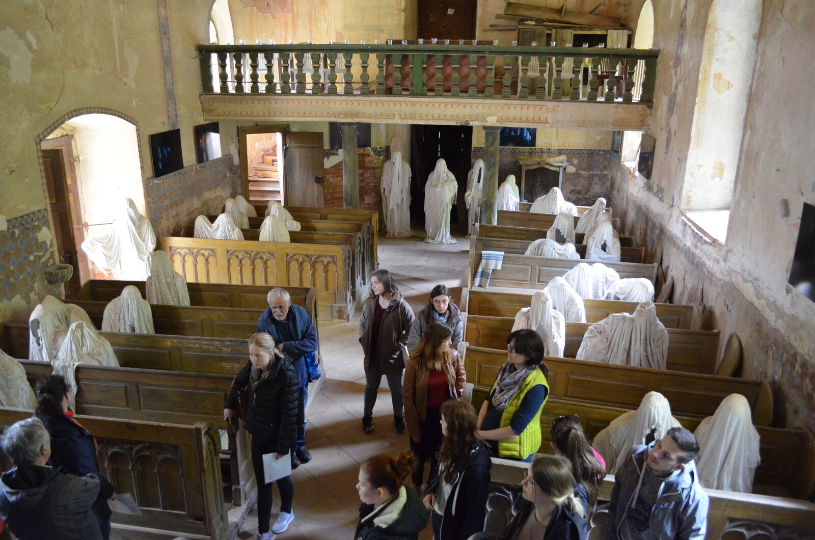 Pomyslnou tečkou za exkurzí byla návštěva kostela v malé vesničce Luková. Ve zdejším rozpadajícím se a dávno pro mše neužívaném kostele instaloval v roce 2012 v rámci své bakalářské práce student tehdejšího Ústavu umění a designu ZČU v Plzni Jakub Hadrava své sádrové sochy věřících. Působivé dílo má ohromný ohlas, do Lukové se sjíždějí fotografové a turisté doslova z celého světa. Kostel už podle všeho nespadne, střecha a strop jsou opravené, připravuje se rekonstrukce obvodového zdiva.