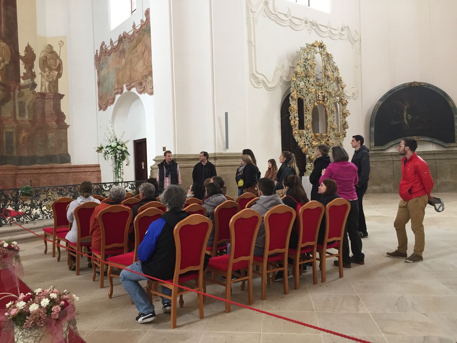 Dopoledne jsme věnovali důkladné prohlídce bývalého proboštství Mariánská Týnice poblíž Kralovic, v němž sídlí Muzeum a galerie severního Plzeňska. Pod vedením zdejšího pracovníka, mimochodem absolventa FF ZČU, Pavla Beneše, jsme se věnovali jak problematice barokních památek a jejich zasazení do krajiny, tak otázce obnovy proboštství, které bylo po zřícení kupole v roce 1920 v ruinách. Tato obnova v současné době vrcholí dostavbou plánovaného, ale nikdy nerealizovaného východního ambitu. Pavel Beneš také představil aktivity a projekty zdejšího Centra baroka, zvláště ty, které jsou realizovány ve spolupráci s německým (zejména bavorskými) partnery.