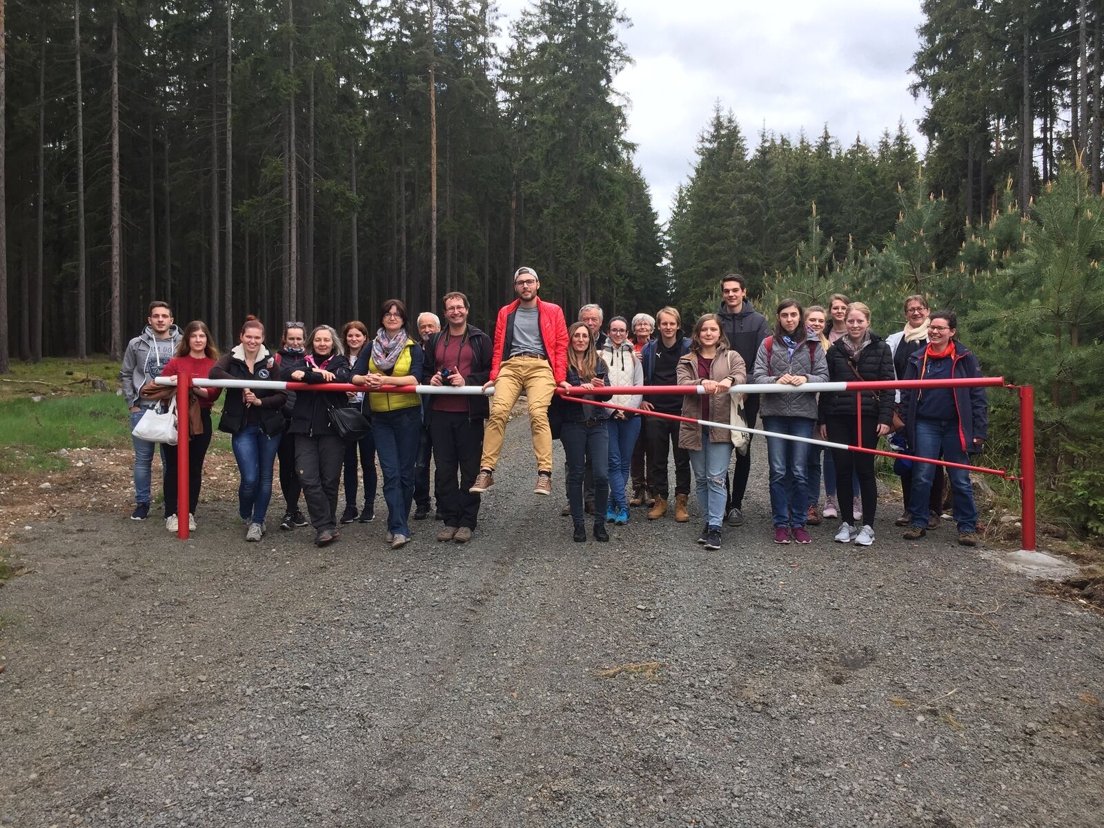 Zatím poslední exkurze se uskutečnila v pátek 17. května 2019, tentokrát ve spolupráci s kolegyněmi z katedry filozofie FF ZČU, které zajišťují certifikátové studium Kompetence pro česko-bavorský příhraniční region. Díky nim jsme měli k dispozici menší autobus s řidičem ochotným vydat se (neplánovaně) i po štěrkové polní cestě, ale hlavně – exkurze získala mezinárodní složení, neboť se jí účastnili studující a vyučující z univerzity v Řezně (Regensburg), na které probíhá paralelně totéž certifikátové studium.