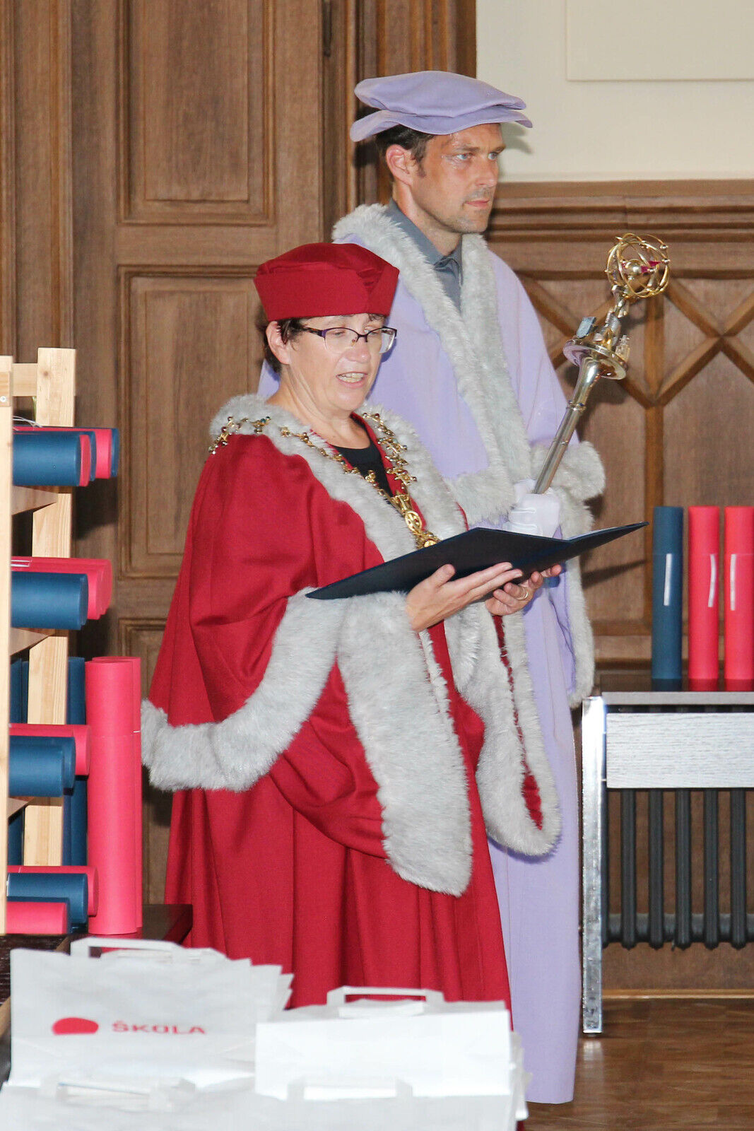 Při slavnostní promoci ve čtvrtek 27. června převzalo diplom 35 úspěšných absolventů. Tubusy jim předali prorektorka pro studijní a pedagogickou činnost Blanka Šedivá a děkan FPE Miroslav Randa.