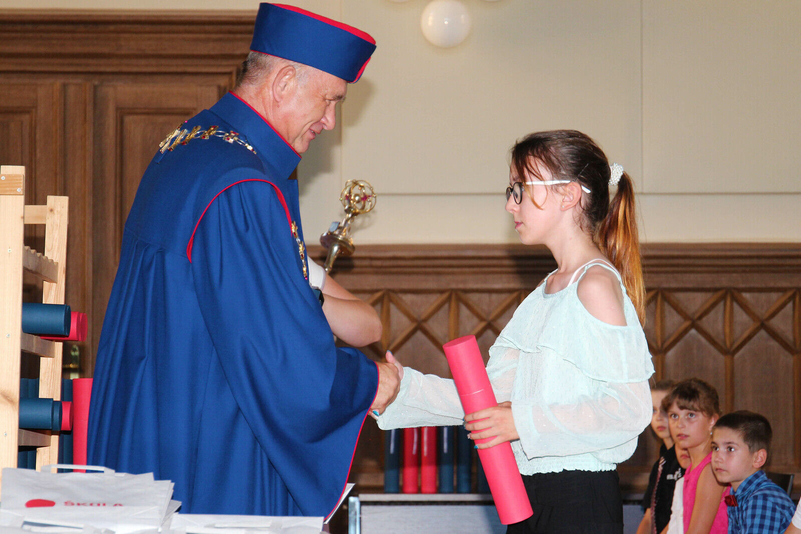 „Účastí na dětské univerzitě jste prokázali zvídavost, chuť objevovat a schopnost přijímat vše nové. To je pro váš život mnohem důležitější než vstřebání ohromného množství poznatků," ocenil děkan Miroslav Randa.