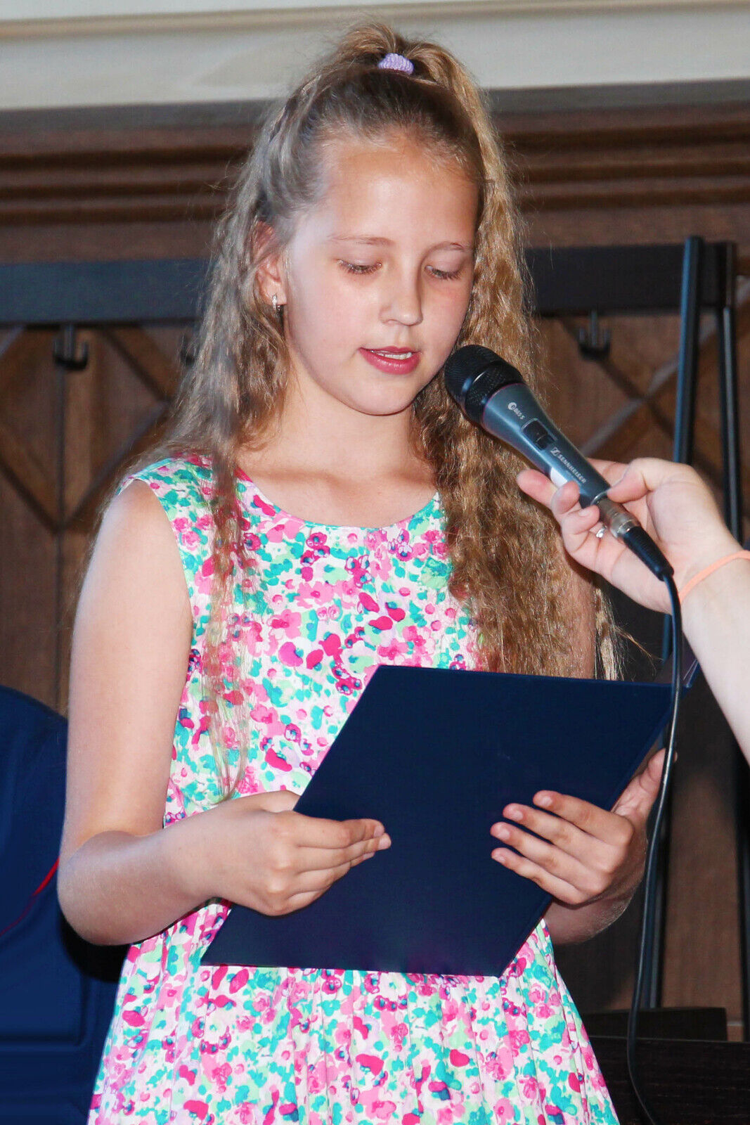 S děkovným projevem vystoupila i jedna z žákyň: "Po první hodině jsem byla nadšená a na každou další přednášku jsem se velmi těšila," popisovala své dojmy aule zaplněné spolužáky a jejich rodinami.