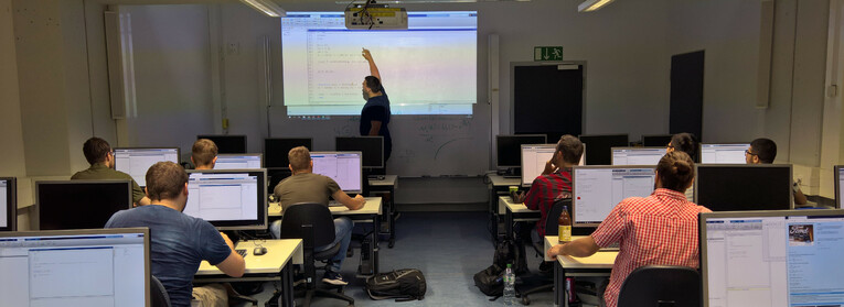 Výzkumníci FEL Martin Juřík, Karel Slobodník a Roman Hamar na přelomu července a srpna přenášeli na Ostbayerische Technische Hochschule Regensburg (OTH) v rámci kurzu zaměřeného na počítačové simulace s elektrickými obvody a software MATLAB.
