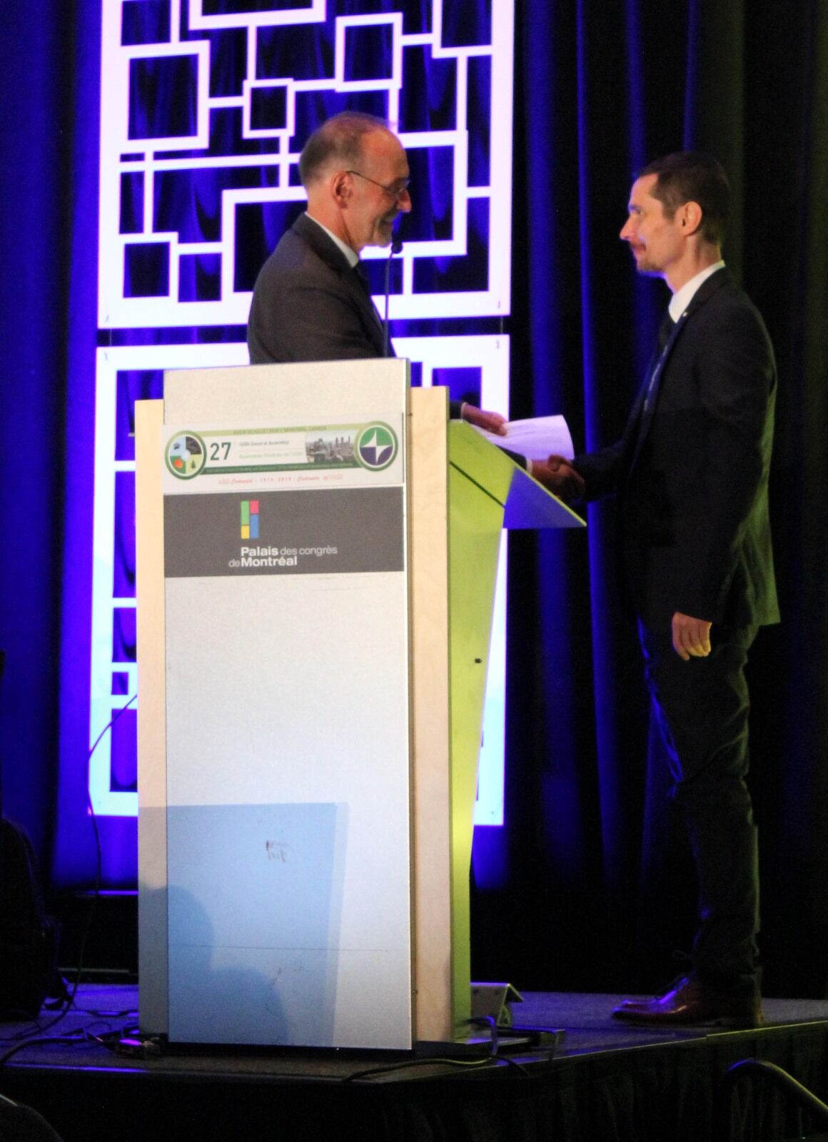 Michal Šprlák se tak zařadil mezi nejvýznamnější světové geodety, kteří toto ocenění získali dříve, jako jsou například Erik Grafarend, Fernando Sansò, John Wahr či Peter Teunissen. Ocenění z rukou prezidenta IAG Haralda Schuha převzal v rámci 27. valného shromáždění Mezinárodní unie geodézie a geofyziky, které se konalo od 9. do 17. července v Montrealu.
