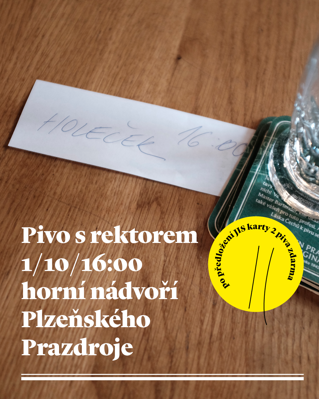 Po předložení JIS karty má každý student nárok na dvě piva zdarma. Akci jako vždy zpříjemní také hudební vystoupení a zábavné soutěže.