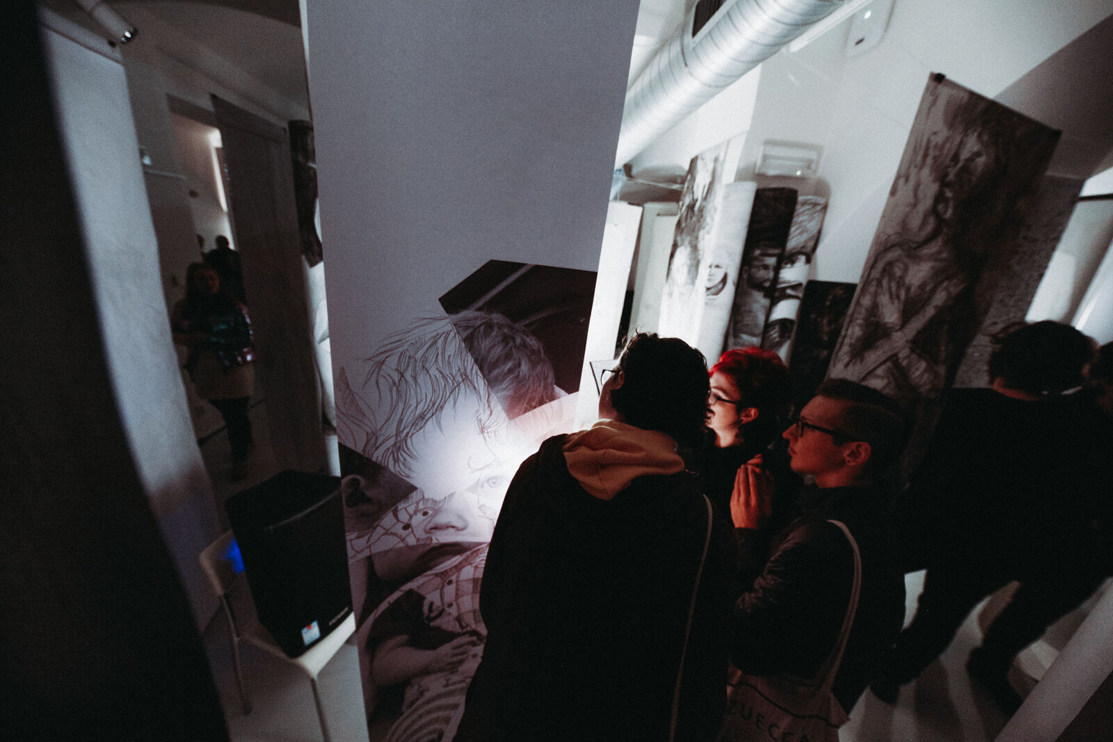 Tématem je světlo jako určující kontext vizuality a kniha jako místo pozitivního střetu textu s obrazem. V závislosti na proměnlivém osvětlení se velkoformátové tisky s jednotným námětem lidské figury stanou střídavě hrozbou a předmětem soucitu. Otázky archetypální a přesto aktuální jsou formulovány současným jazykem, vycházejícím z tradice grafických technik a směřující ke zrovnoprávnění současných technologií.