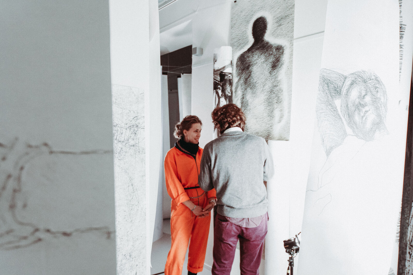 Cílem výstavního projektu Kruhová obrana je pojmenovat čarami, body a plochami studijní program ateliéru: otisk člověka vrženého do světla jako identifikace prožitku s jeho záznamem.
