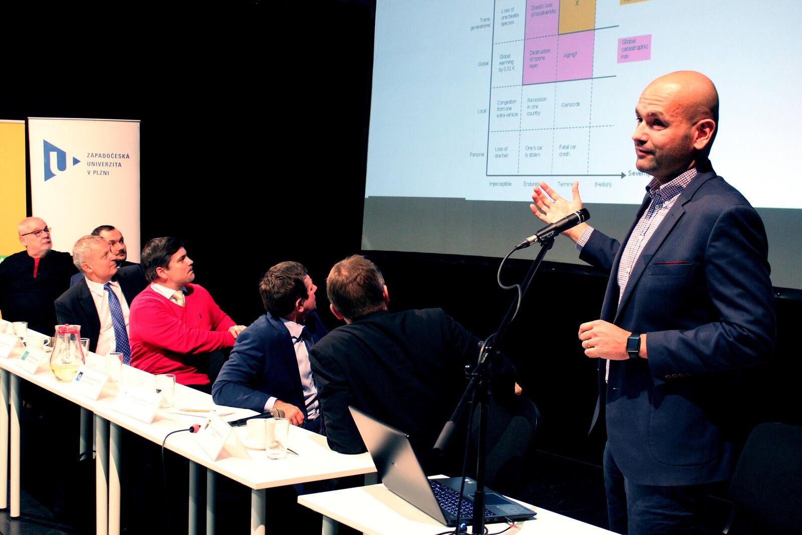 Jan Romportl, absolvent kybernetiky na Fakultě aplikovaných věd ZČU, který se na doktorské úrovni zabýval také filozofií vědy na Fakultě filozofické ZČU, hovořil o globálních existenčních rizicích a umělé inteligenci. „Umělá inteligence mě vždycky bavila tam, kde končí její inženýrská část a začíná spojení s člověkem,“ řekl Jan Romportl. Právě výzkumu v oblasti aplikované umělé inteligence a řečových technologií se Jan Romportl věnoval na katedře kybernetiky FAV ZČU. Vyučoval také předměty zabývající se vztahem nových technologií k člověku, historií kybernetiky a filozofickými otázkami souvisejícími s umělou inteligencí. Jak řekl na panelové diskusi o interdisciplinaritě: „Umělá inteligence potřebuje humanitně vzdělané lidi, kteří mají schopnost algoritmického myšlení, a zároveň technicky vzdělané lidi, kteří chápou, co je etika.“