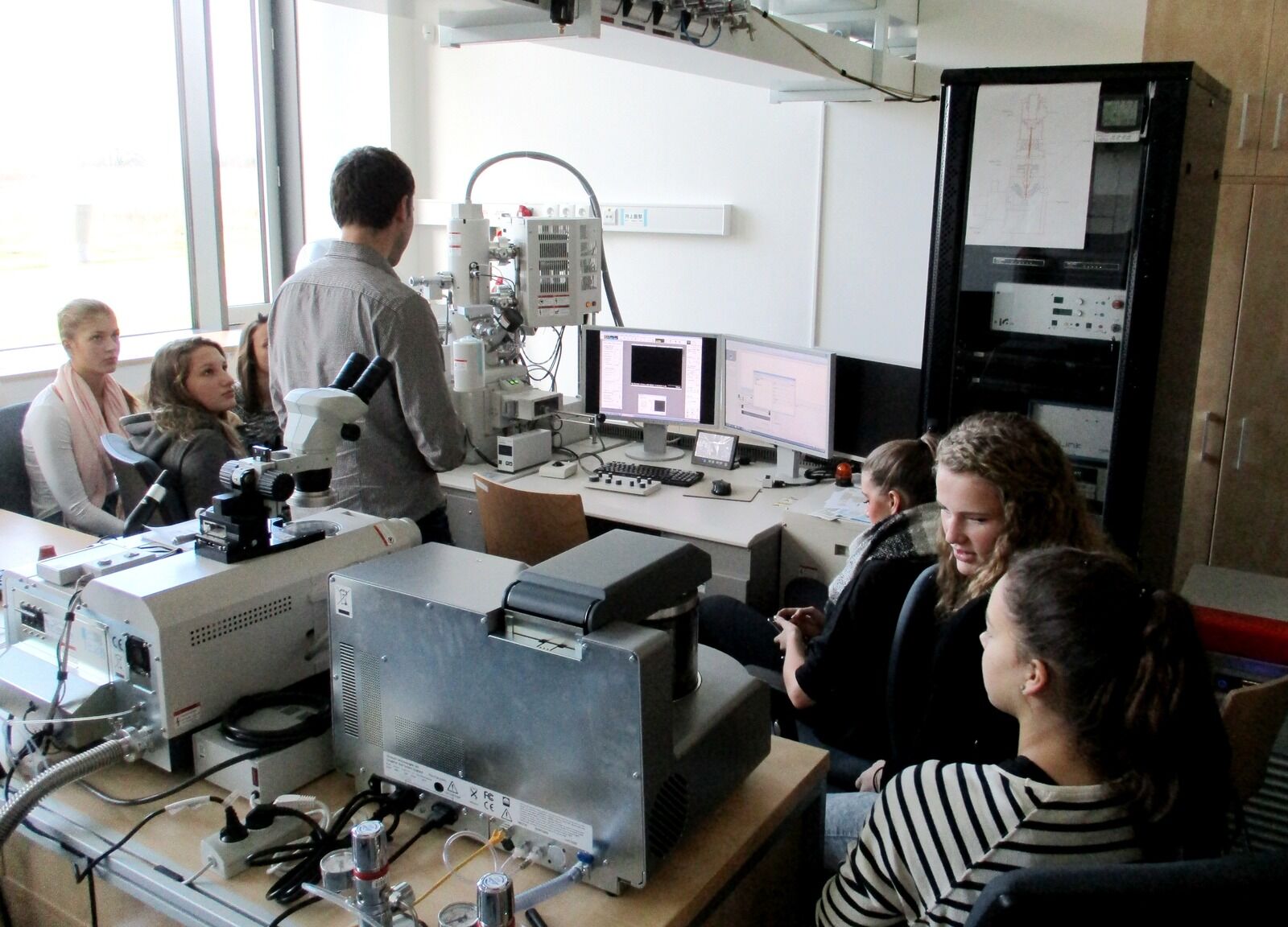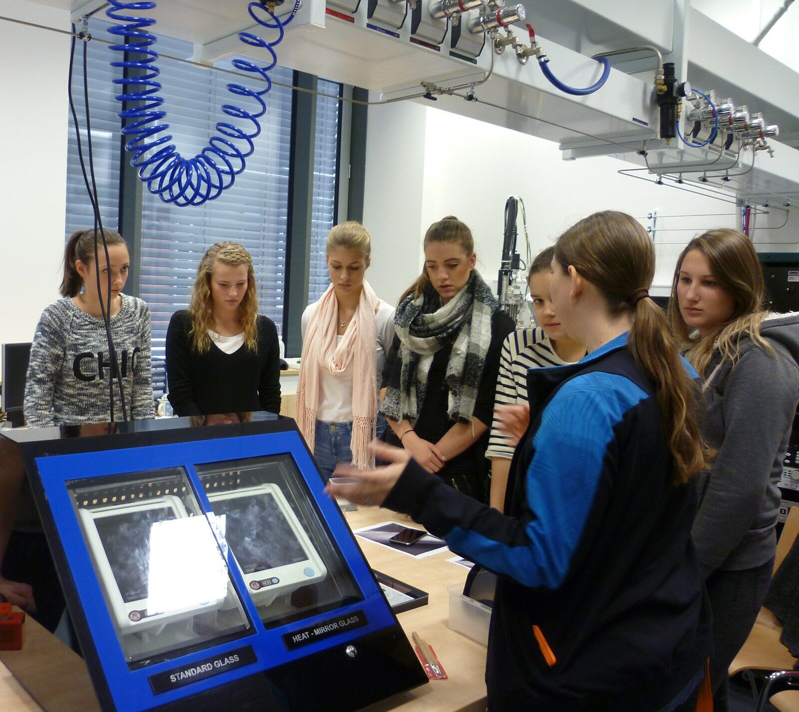 Na katedře fyziky se studentky seznámily s technologií pro přípravu unikátních materiálů s multifunkčními vlastnostmi, v laboratořích pak zkoumaly chemické složení svých šperků i strukturu vlasů.