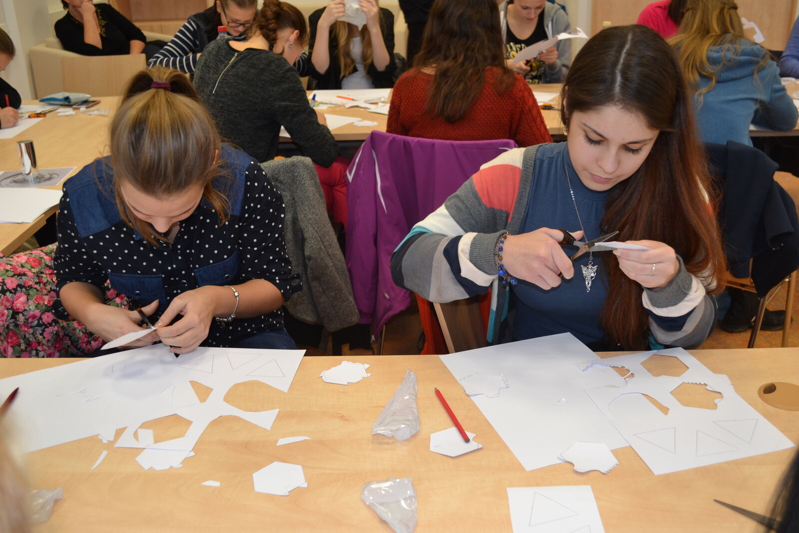 Na katedře matematiky se dívky dozvěděly o základech diferenciální geometrie křivek a ploch a seznámily se s uměleckou tvorbou M. C. Eschera, která představuje vizualizaci matematických principů v oblasti prostorové geometrie. Vytvořily si vlastní mozaiky dle Eschera.