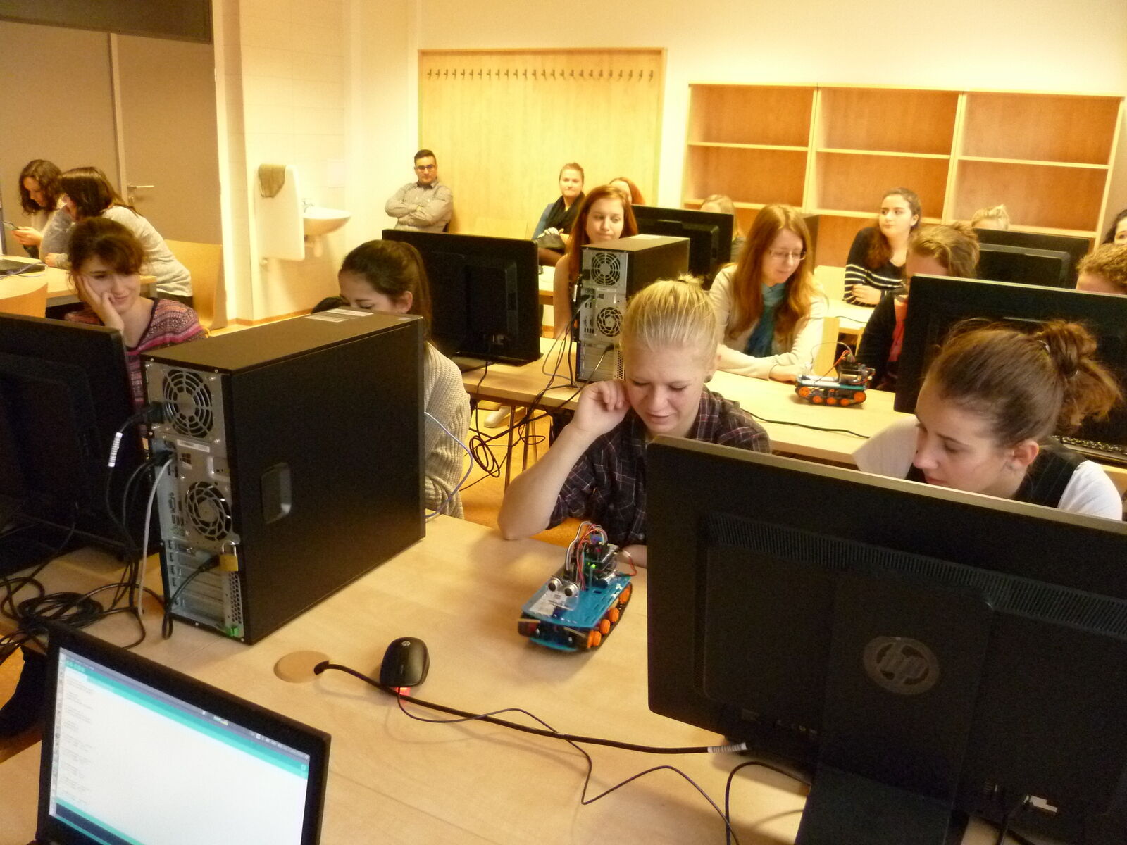 Vyzkoušely si také ovládání robotů pomocí základních programovacích technik a jejich navigaci v reálném prostředí.