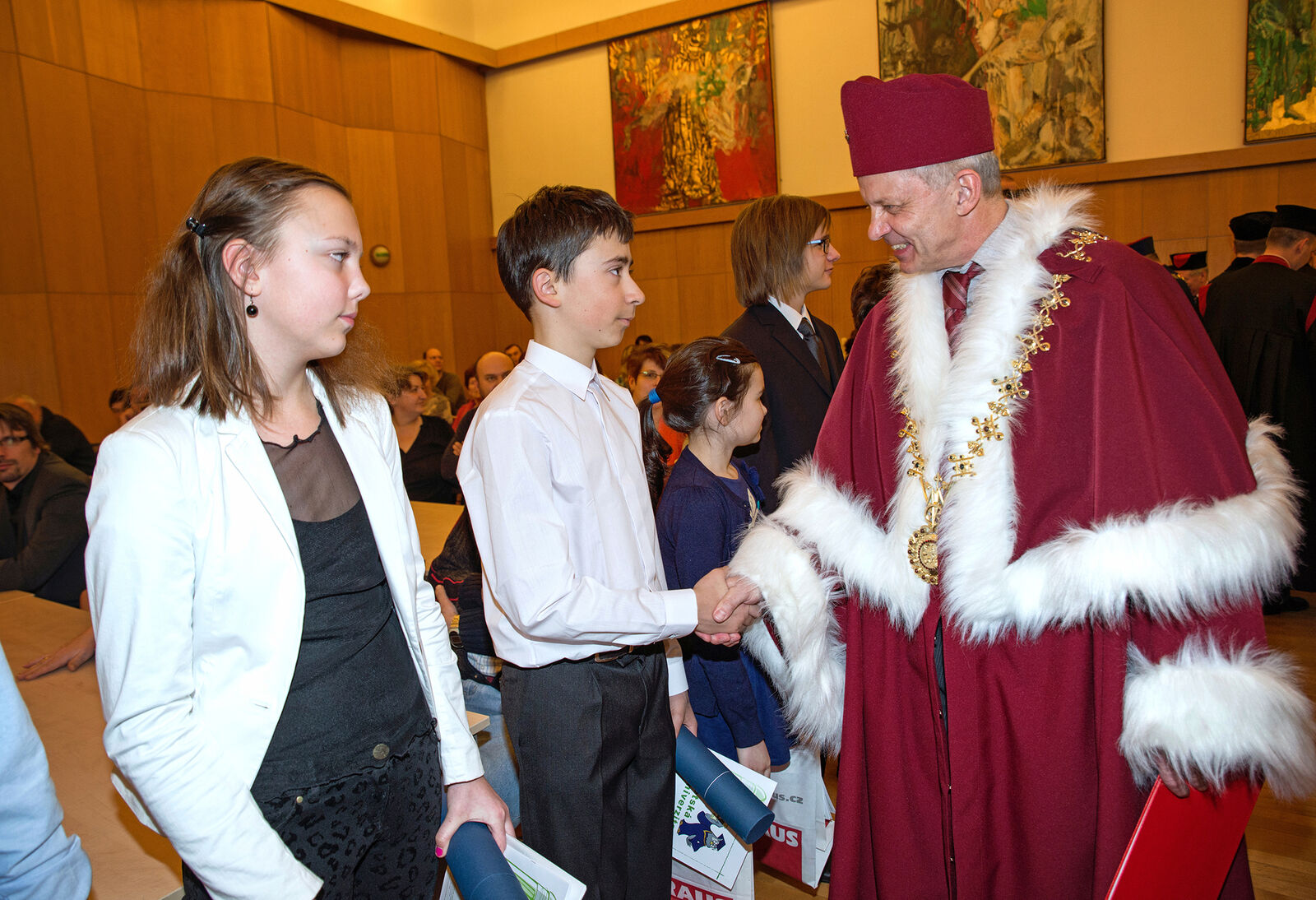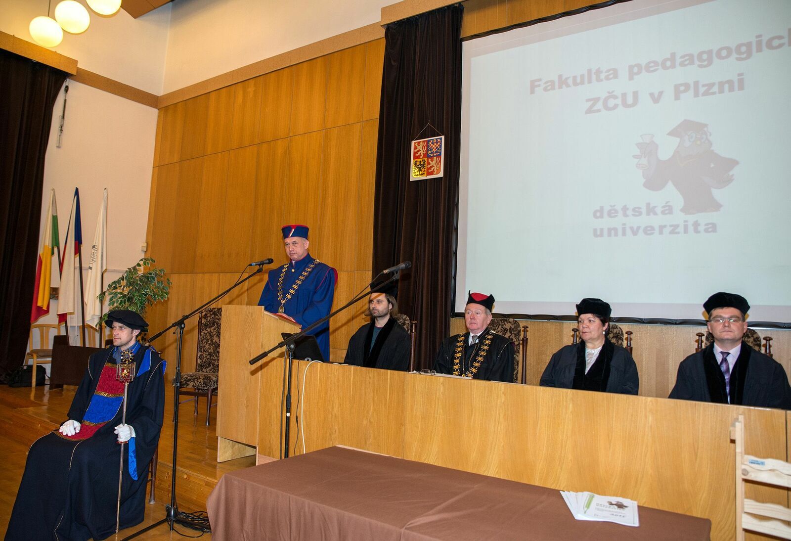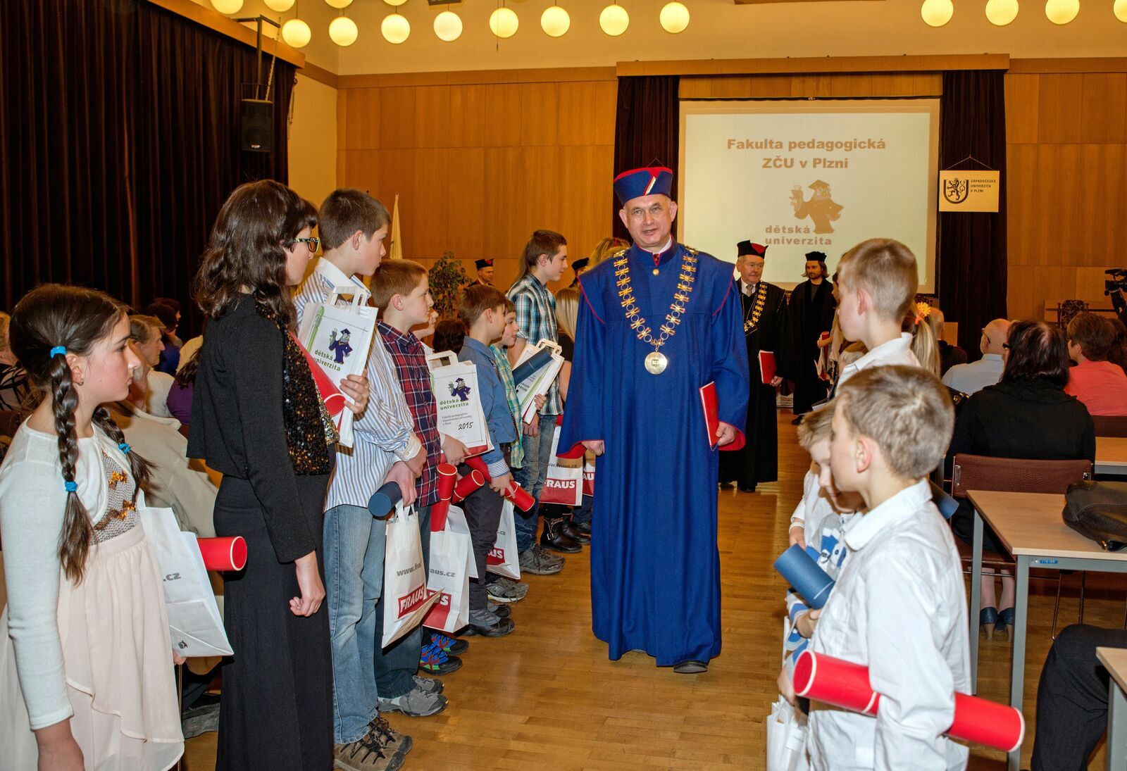 Druhý ročník Dětské univerzity absolvovalo letos 43 studentů. Ve čtvrtek 11. února jim předal diplomy rektor Miroslav Holeček a děkan FPE Miroslav Randa.