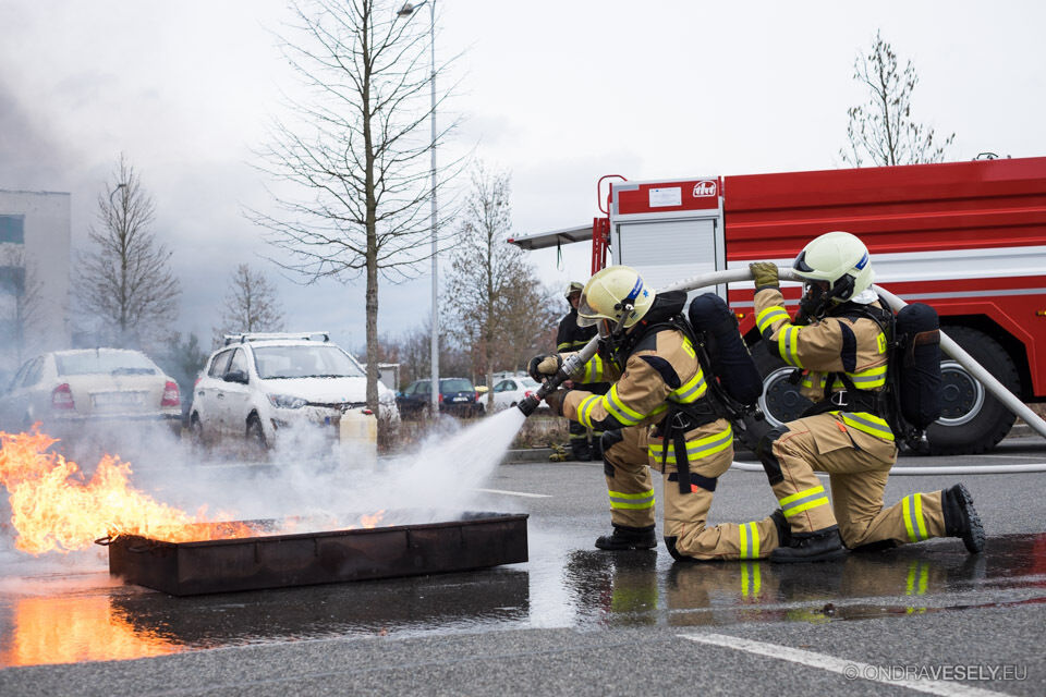 Ochranné oděvy pro hasiče dnes prošly ostrým testem, kterého se zúčastnili členové hodnoticí komise z Belgie.