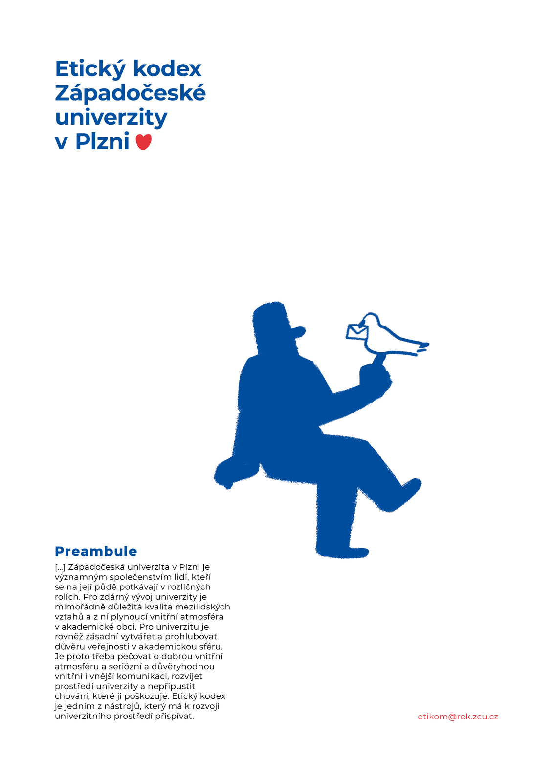 Přiblížit zaměstnancům i studentům Západočeské univerzity zajímavou formou zásady etického chování, to je cíl nové kampaně popularizující Etický kodex ZČU. Texty a grafiky, které zpracoval student Fakulty designu a umění Ladislava Sutnara Jan Chabr, jsou jako plakáty nebo letáky k vidění v budovách všech fakult a také v obou menzách a knihovně. Ilustrovaný kodex vyšel rovněž tiskem a v neposlední řadě ho budeme představovat i tímto seriálem.