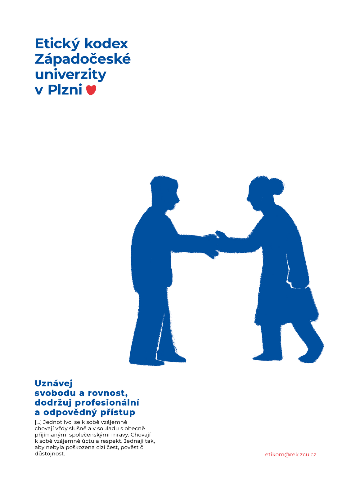 Přiblížit zaměstnancům i studentům Západočeské univerzity zajímavou formou zásady etického chování, to je cíl nové kampaně popularizující Etický kodex ZČU. Texty a grafiky, které zpracoval student Fakulty designu a umění Ladislava Sutnara Jan Chabr, jsou jako plakáty nebo letáky k vidění v budovách všech fakult a také v obou menzách a knihovně. Ilustrovaný kodex vyšel rovněž tiskem a v neposlední řadě ho představujeme i tímto seriálem.