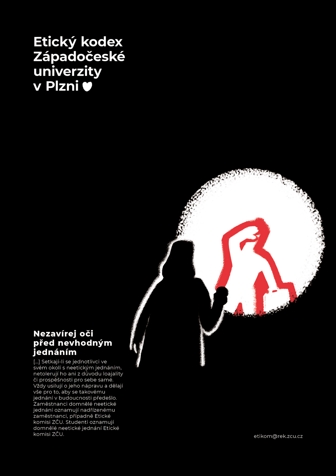 Přiblížit zaměstnancům i studentům Západočeské univerzity zajímavou formou zásady etického chování, to je cíl nové kampaně popularizující Etický kodex ZČU. Texty a grafiky, které zpracoval student Fakulty designu a umění Ladislava Sutnara Jan Chabr, jsou jako plakáty nebo letáky k vidění v budovách všech fakult a také v obou menzách a knihovně. Ilustrovaný kodex vyšel rovněž tiskem a v neposlední řadě ho představujeme i tímto seriálem.