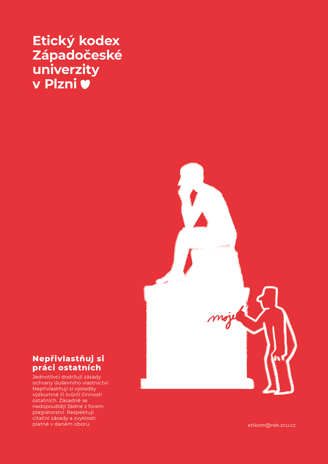 Přiblížit zaměstnancům i studentům Západočeské univerzity zajímavou formou zásady etického chování, to je cíl nové kampaně popularizující Etický kodex ZČU. Texty a grafiky, které zpracoval student Fakulty designu a umění Ladislava Sutnara Jan Chabr, jsou jako plakáty nebo letáky k vidění v budovách všech fakult a také v obou menzách a knihovně. Ilustrovaný kodex vyšel rovněž tiskem a v neposlední řadě ho představujeme i tímto seriálem.
