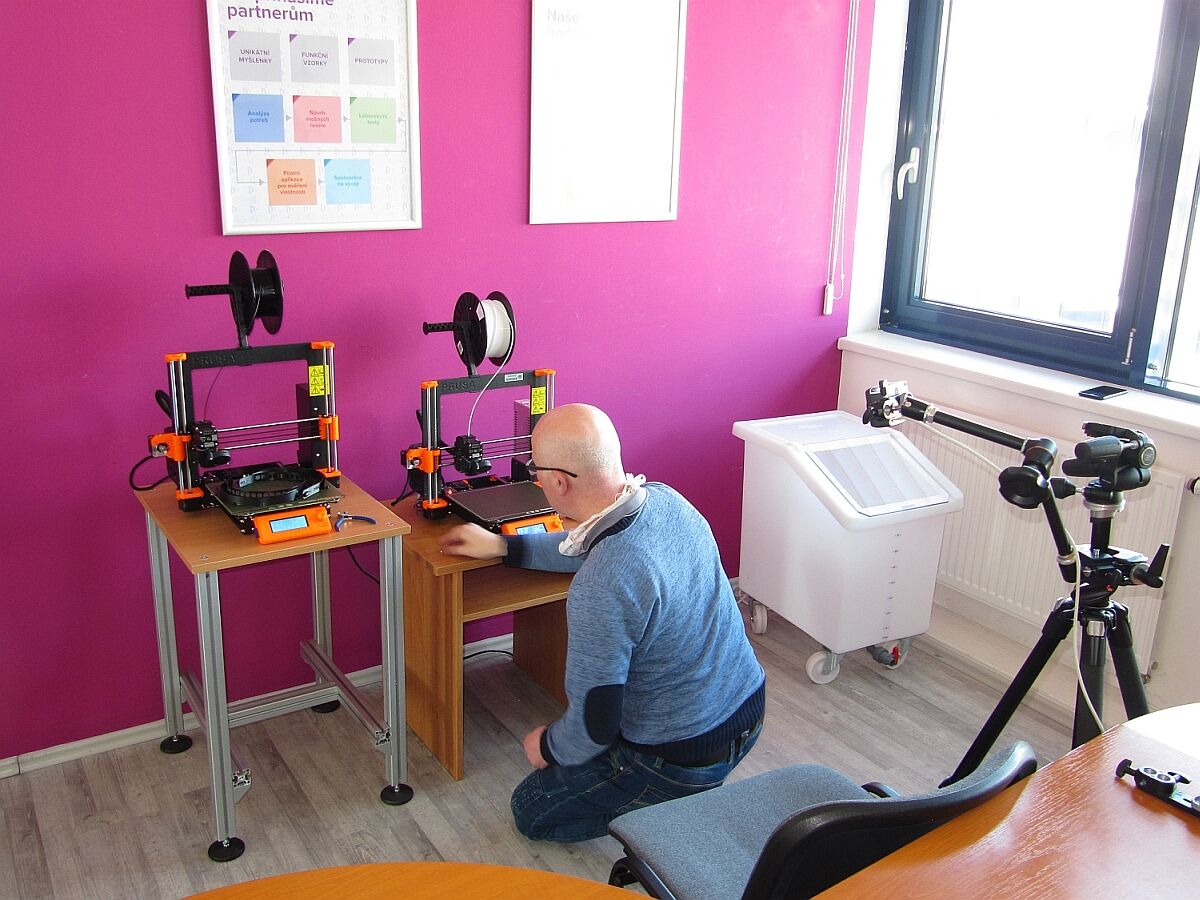 výroba štítů na 3D tiskárně ve výzkumném centru NTC