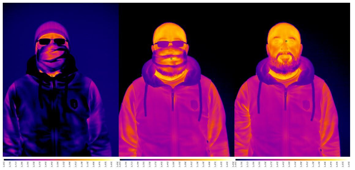Člověk za ochranným štítem se stává pro termokameru neviditelným