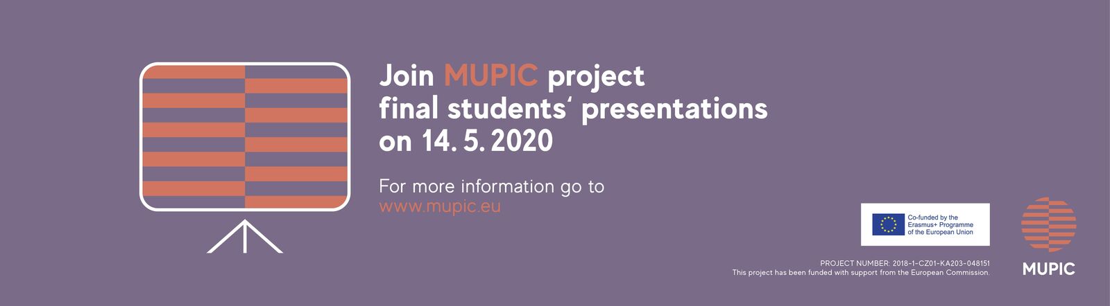 Nyní jste srdečně zváni, abyste studenty podpořili svojí účastí během jejich závěrečných prezentací projektu ve čtvrtek 14.5. 2020 od 9:00 do 12:00 CET a od 13:30 do 16:30 SEČ v ZOOM.