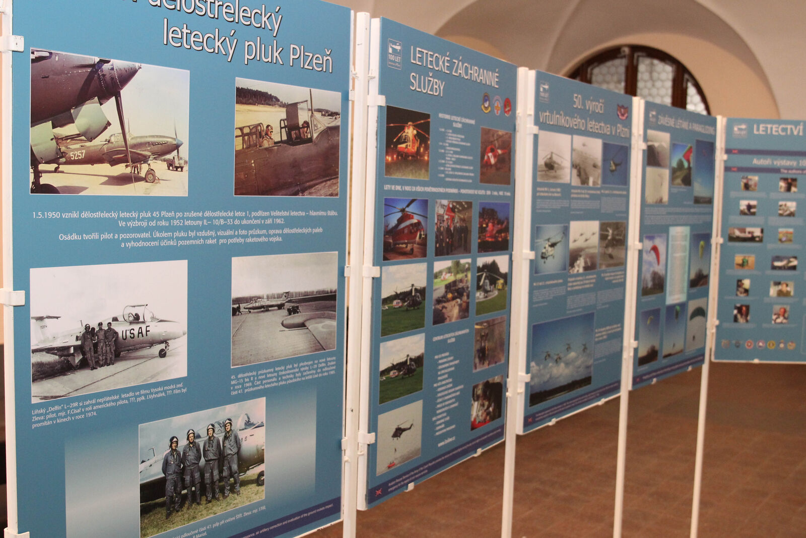 Na výstavě se seznámíte okolnostmi vůbec prvního vzletu na území Plzně, s dějinami i současností zdejší aviatiky. Poznáte rozmanitost letectví od volnočasového po vojenské, nechybí ani část věnovaná letecké záchranné službě či medailonky pilotů z druhé světové války. Panely s texty a fotografiemi doplňují vitríny s leteckými artefakty i modely letadel a vrtulníků.