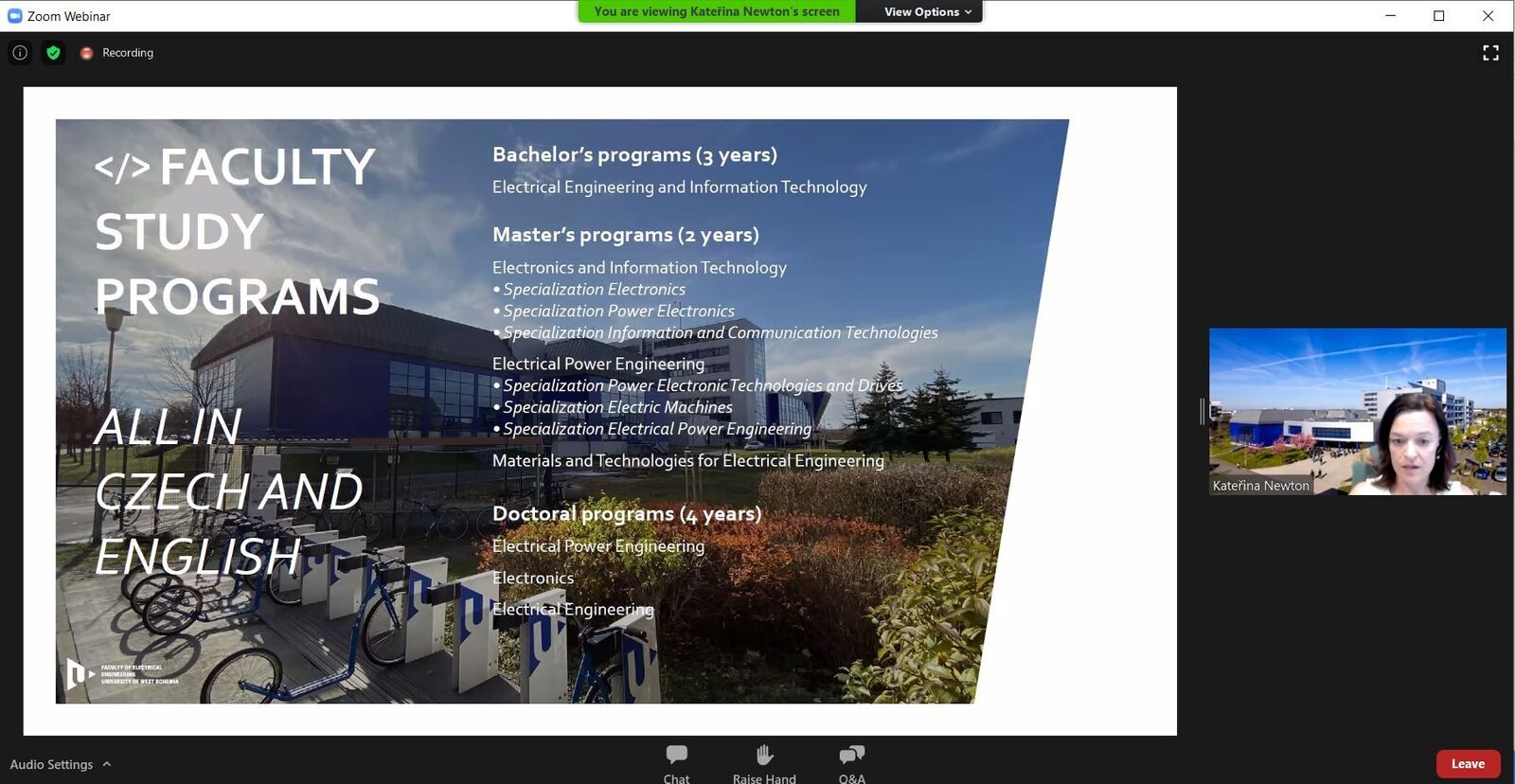 Na všech uvedených akcích byla naše univerzita propagována jako celek, na jednotlivých veletrzích navíc speciálně nabízela studium na některé ze tří fakult, jejichž představitelé projevili zájem o aktivní účast. Fakulta elektrotechnická se přednostně prezentovala v oblastech s předpokládaným zájmem o anglické studijní programy, Fakulta aplikovaných věd a Fakulta ekonomická hrály prim v regionech, kde se očekával zájem o bezplatné studium v češtině. Součástí nabídky byly i přípravné a intenzivní kurzy Ústavu jazykové přípravy.
