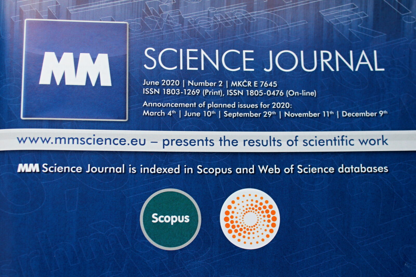 Od roku 2008 v České republice vychází vědecký časopis MM Science Journal. Jedná se o jediný časopis svého druhu vydávaný komerčním vydavatelstvím. U jeho zrodu stál také Stanislav Hosnedl z katedry konstruování strojů Fakulty strojní ZČU. V pomyslném žebříčku kvality letos MM Science Journal udělal důležitý krok - kromě databází EBSCO a Scopus je nově také součástí databáze Web of Science, zahrnující přes deset tisíc nejvýznamnějších vědeckých časopisů světa.