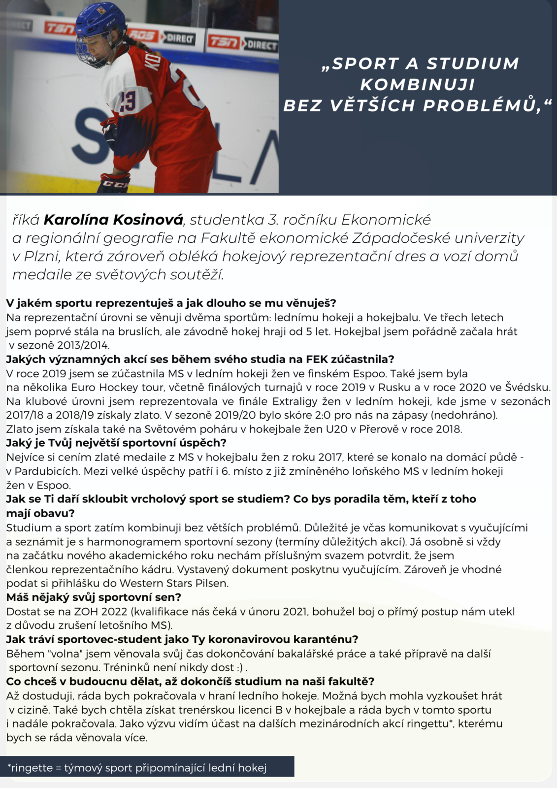 V rozhovoru o tom, jak se dá skloubit studium a sport, kterých