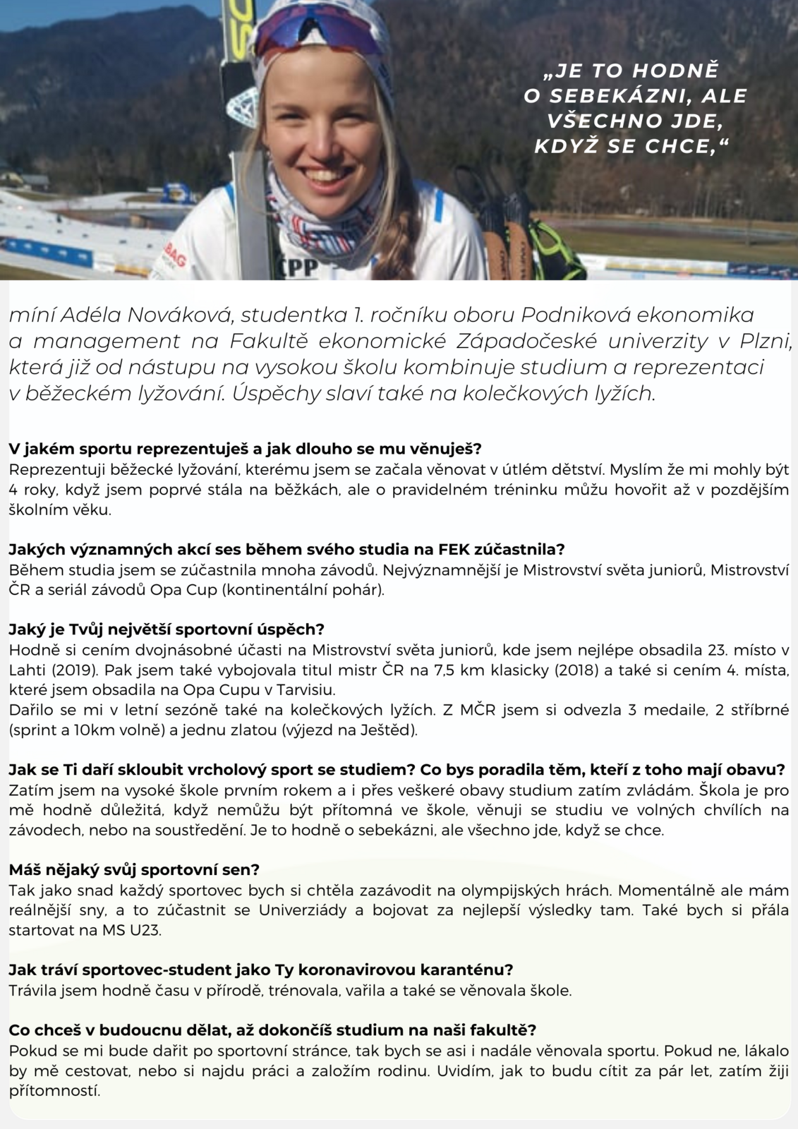 Fakulta ekonomická sbírá příběhy svých studentů-sportovců