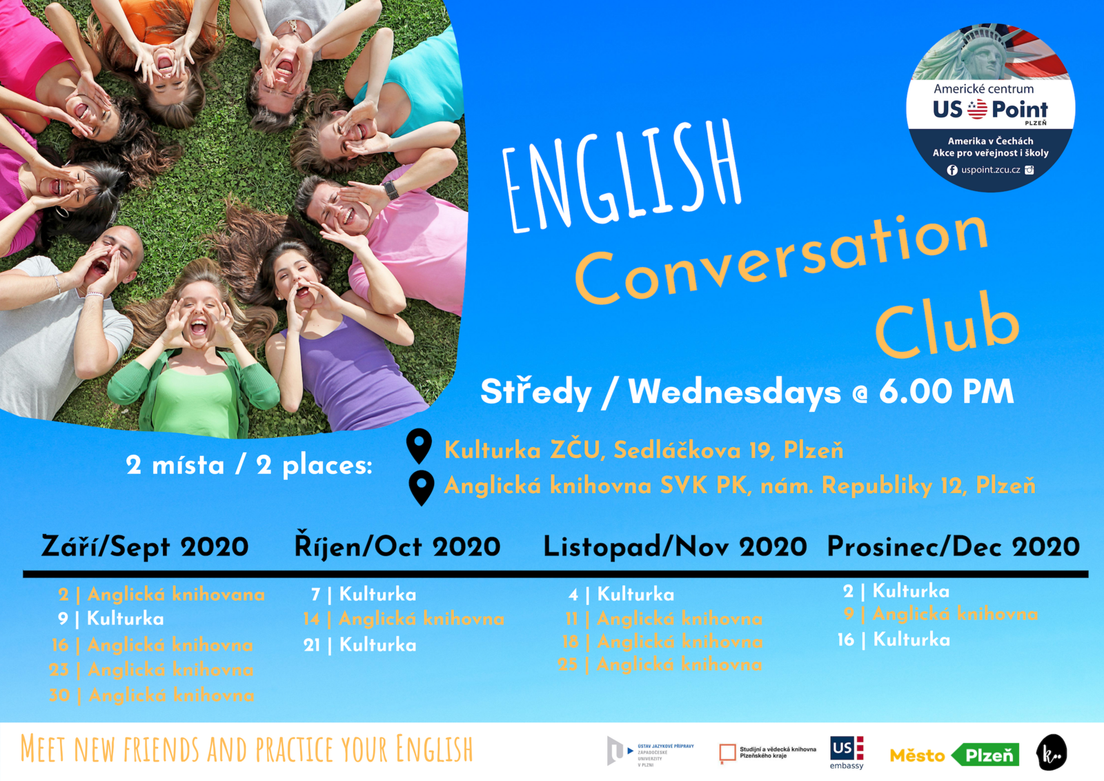 Konverzační klub probíhá vždy ve středu od 18:00 do 19:00 hod. na dvou