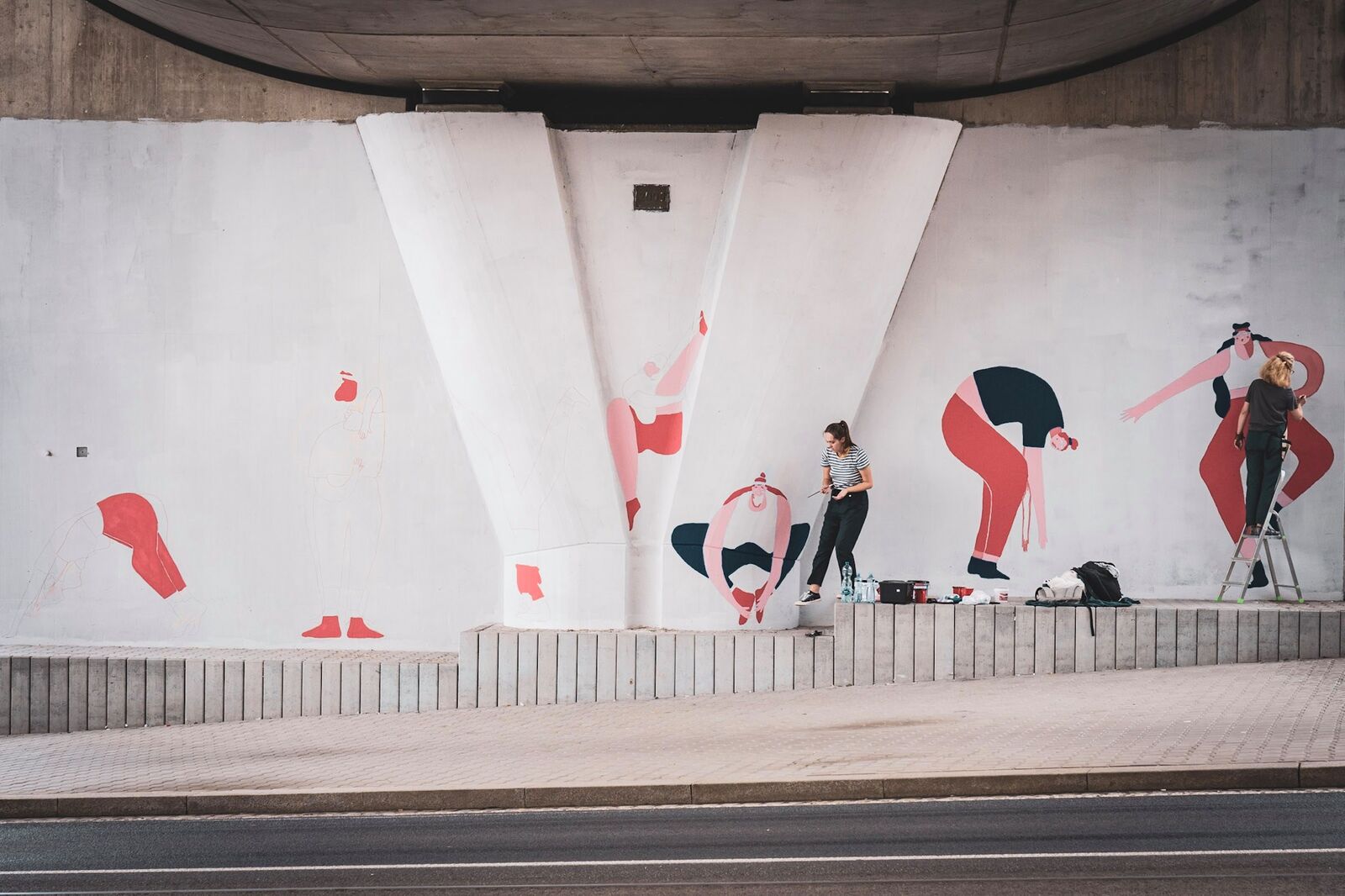 Od ostatních umělců se lišila tím, že při tvorbě používala štětce. „Je to sice pomalejší, ale díky tomu jsem docílila toho, že figury vypadají tak, jak jsem chtěla. Nevím, jak by to dopadlo se spreji," skromně dodala. A dopadlo to skvěle. Její jogínky z písu „SPARTAKIÁDA 2020" rozvlnily pilíř mostu Milénia, kde své dílo studentka finišovala 20. srpna. Náladu jí nezkazila ani událost, ke které došlo krátce po zahájení prací. „Hned asi deset minut poté, co jsme začali, přijeli policisté, že dostali hlášení na graffiti," doplnila Daniela.